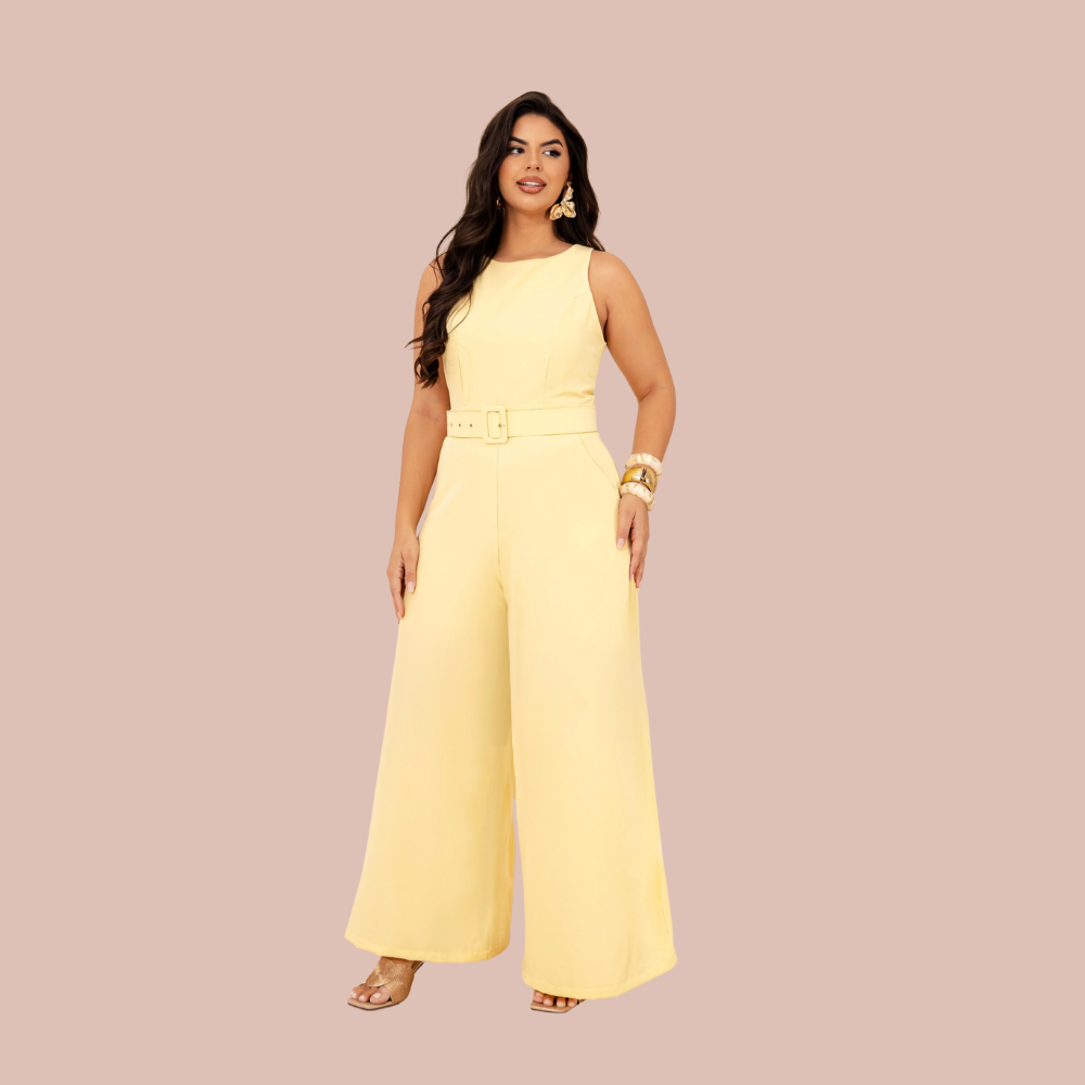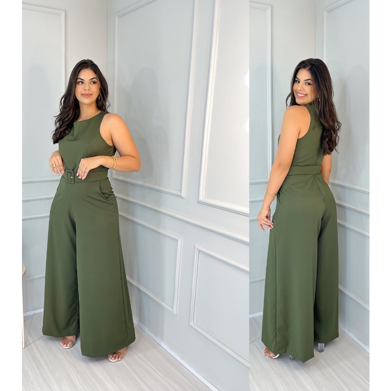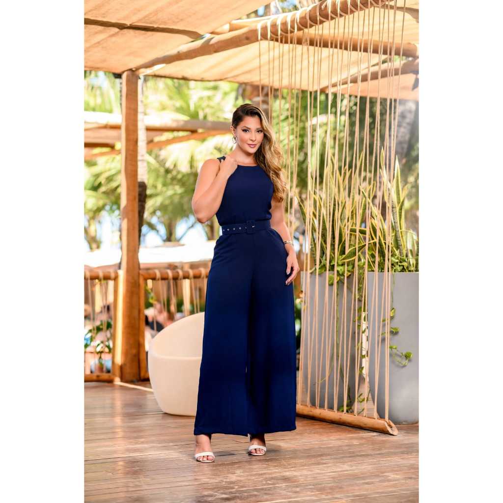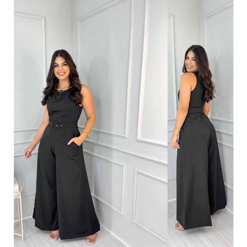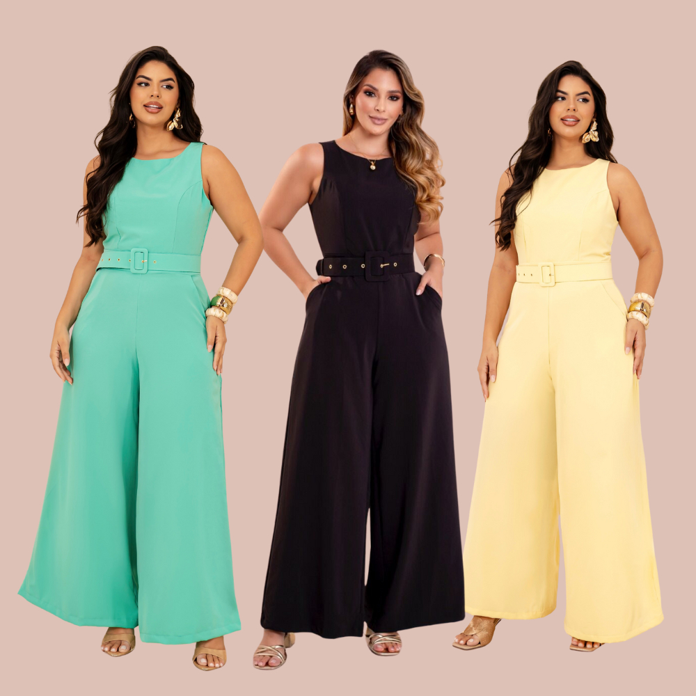 Macacão Pantalona Cinto Coberto