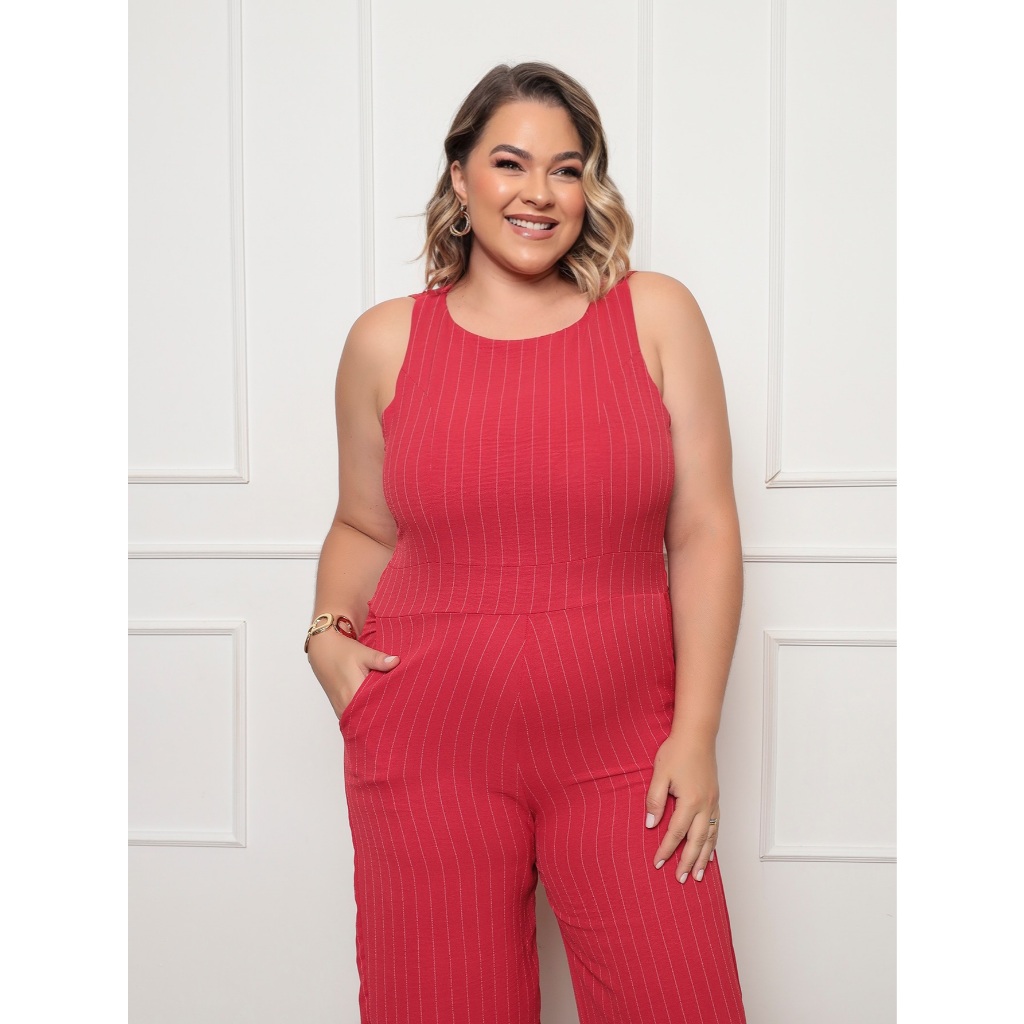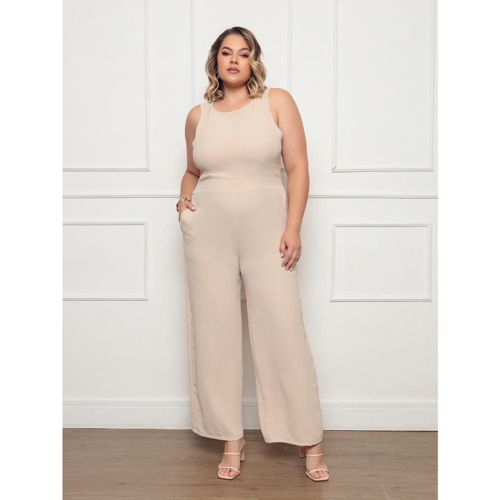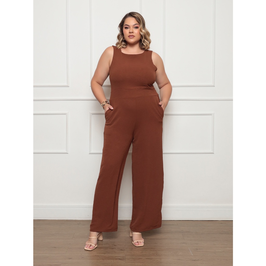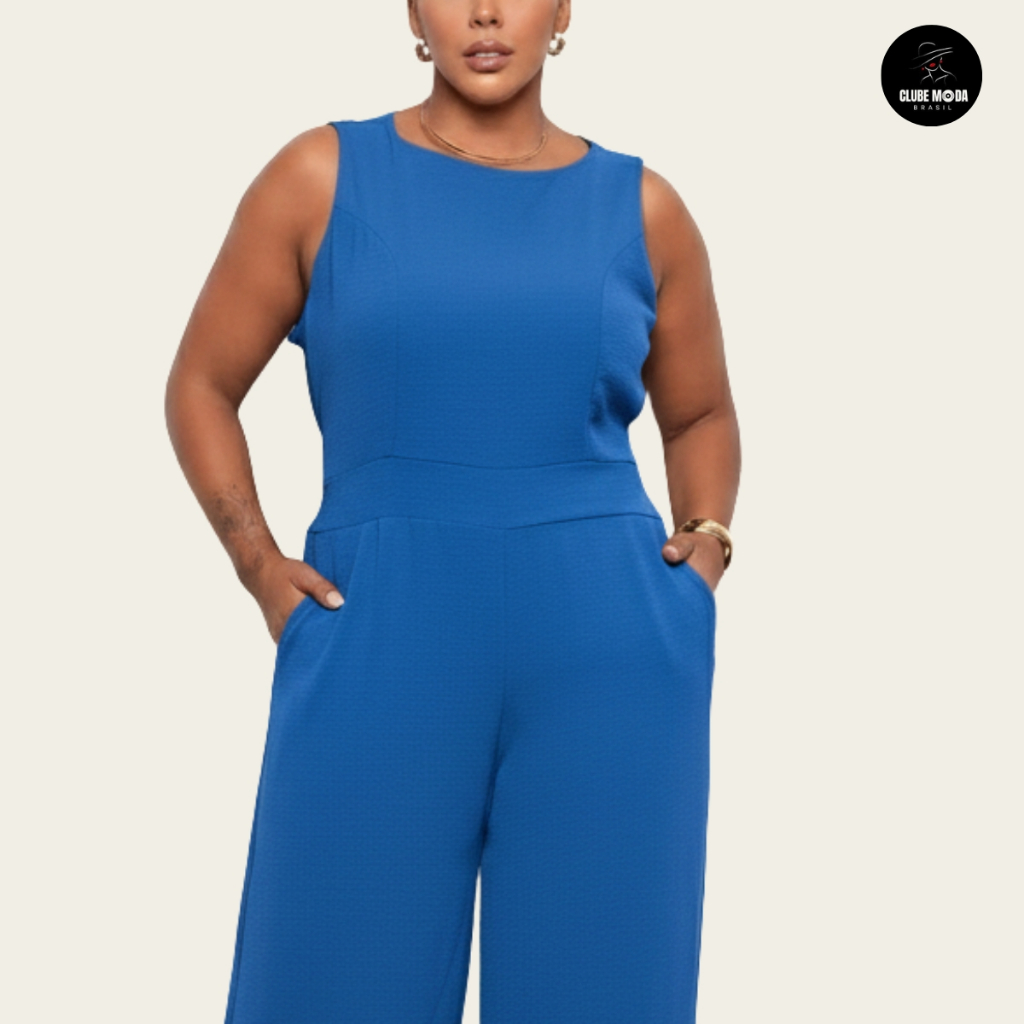 Macacão Social Feminino Elegante Elastex Acinturado Com Bolso