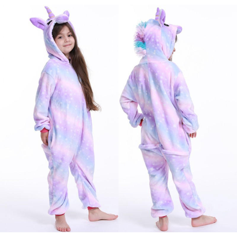 Macacões de Inverno para Meninas e Meninos, Unicórnio Fofo com Bolinhas, Pijamas de Animais, Dois Desenhos Animados, Ani