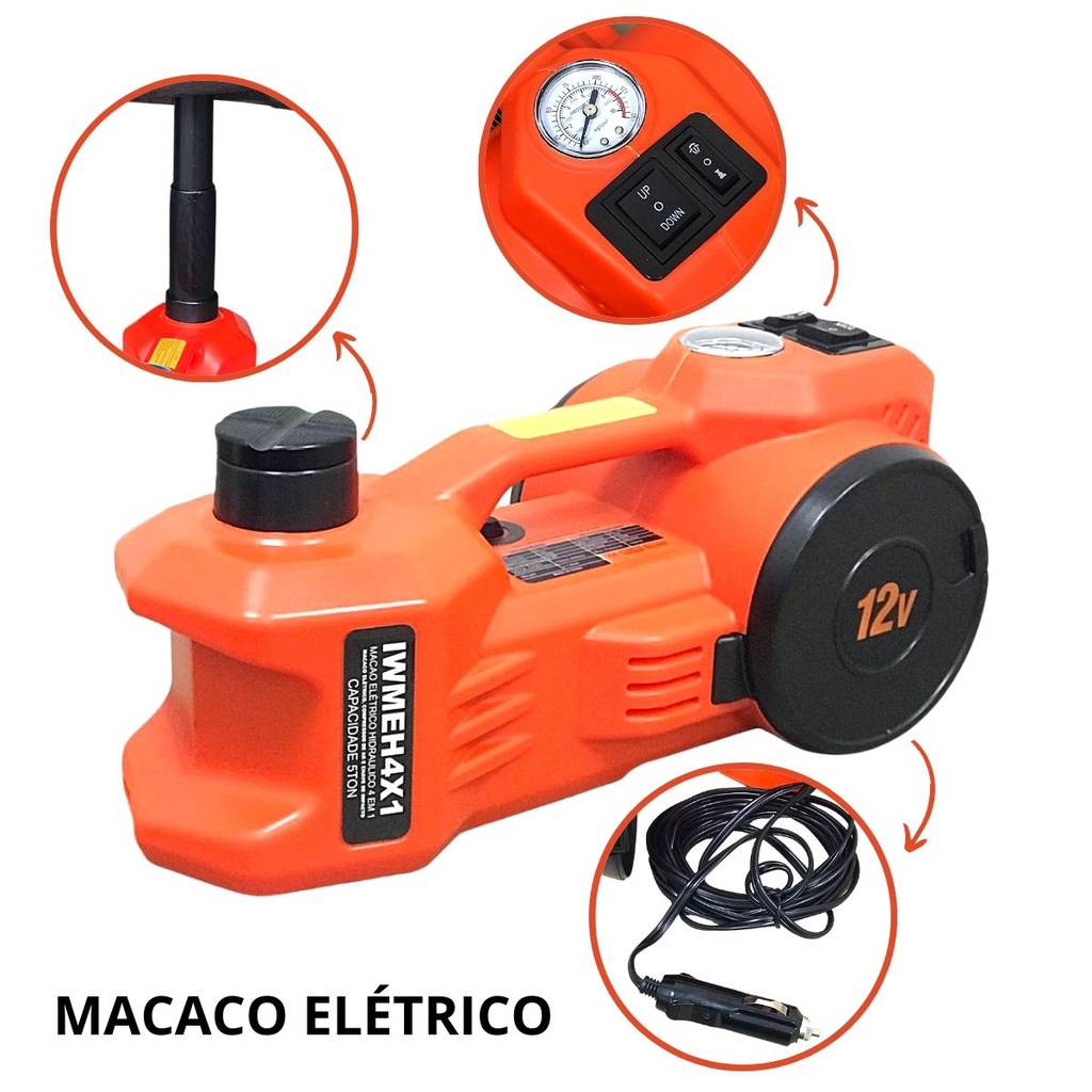 Macaco Eletrico Hidráulico Importway 12v 4 Em 1 Compreensor