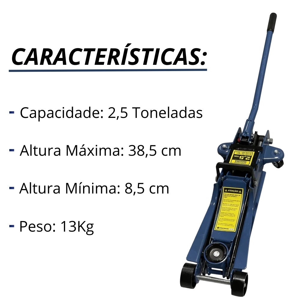 Macaco Rebaixado Jacaré Hidráulico 2,5 Toneladas Bremen