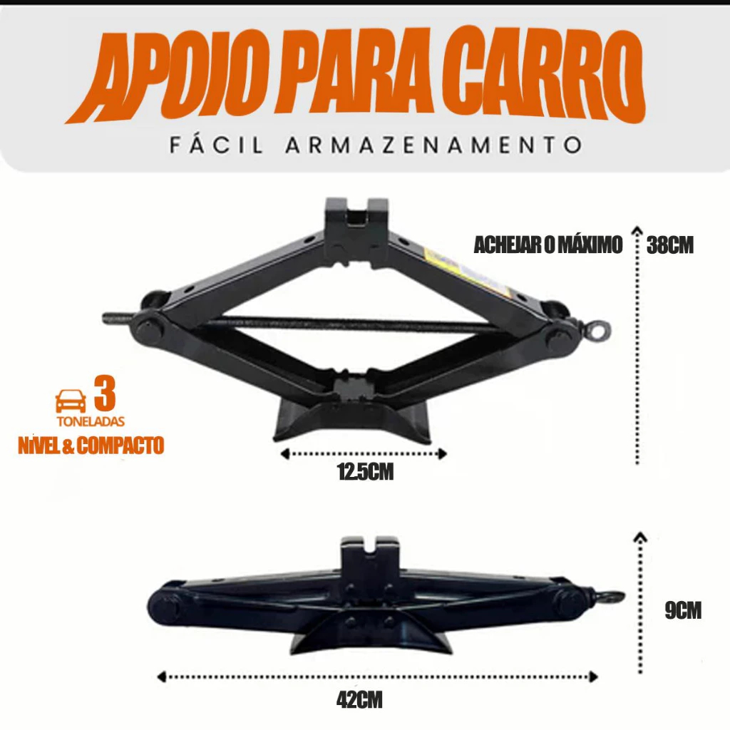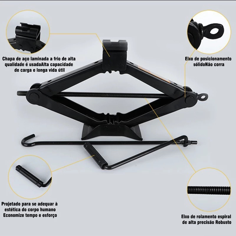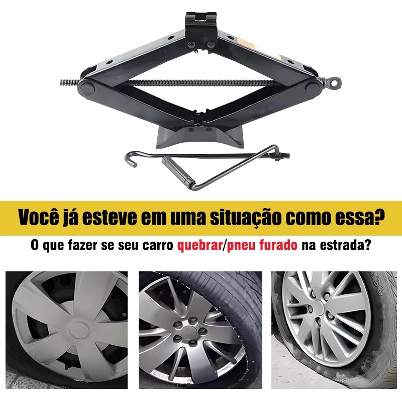 Macaco Sanfona de Carro Suporta 1.5 -3T Jacaré Universal Original para Troca de Pneu com chave
