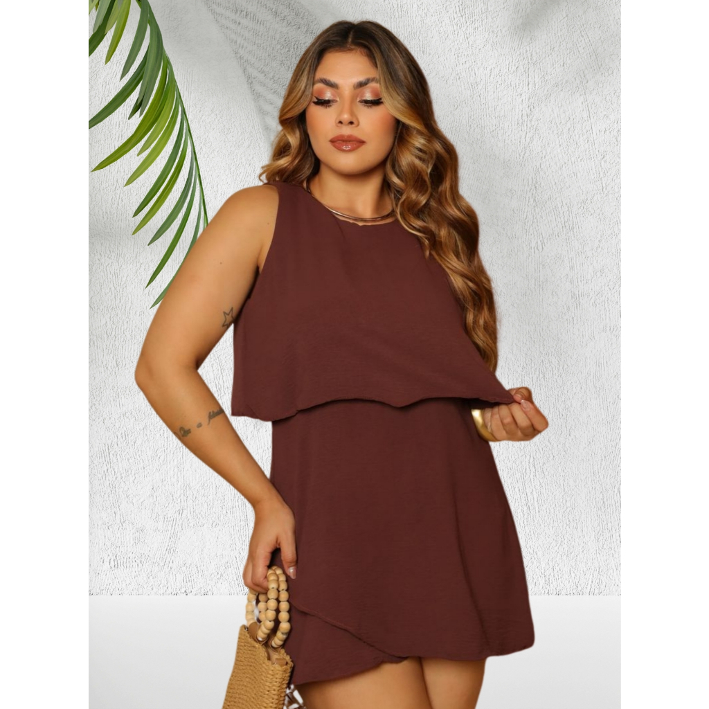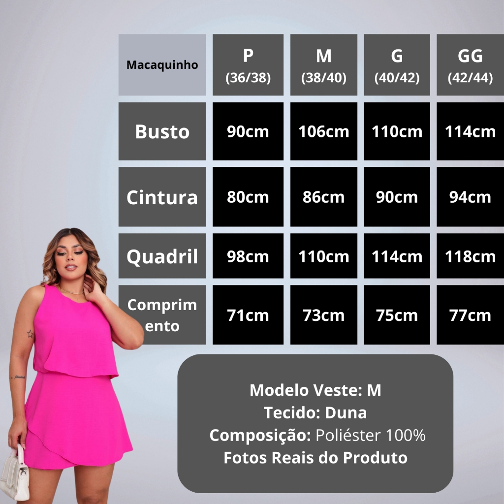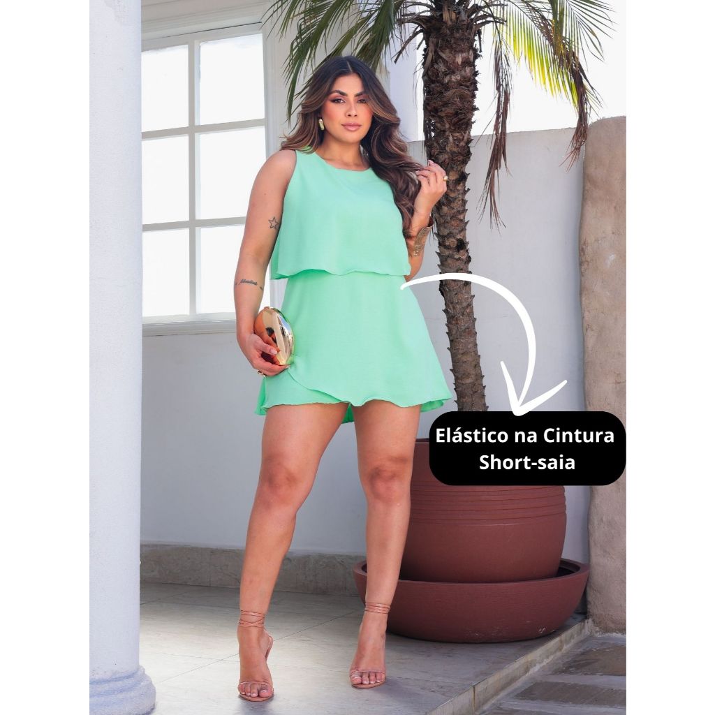 Macaquinho Feminino Curto Forrado Com Camadas Duna Com Ziper Nas Costas