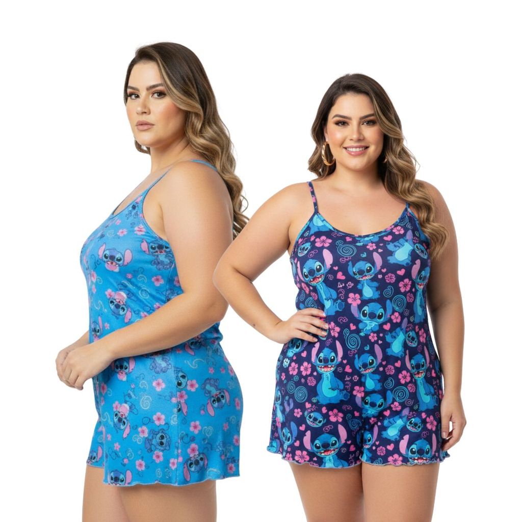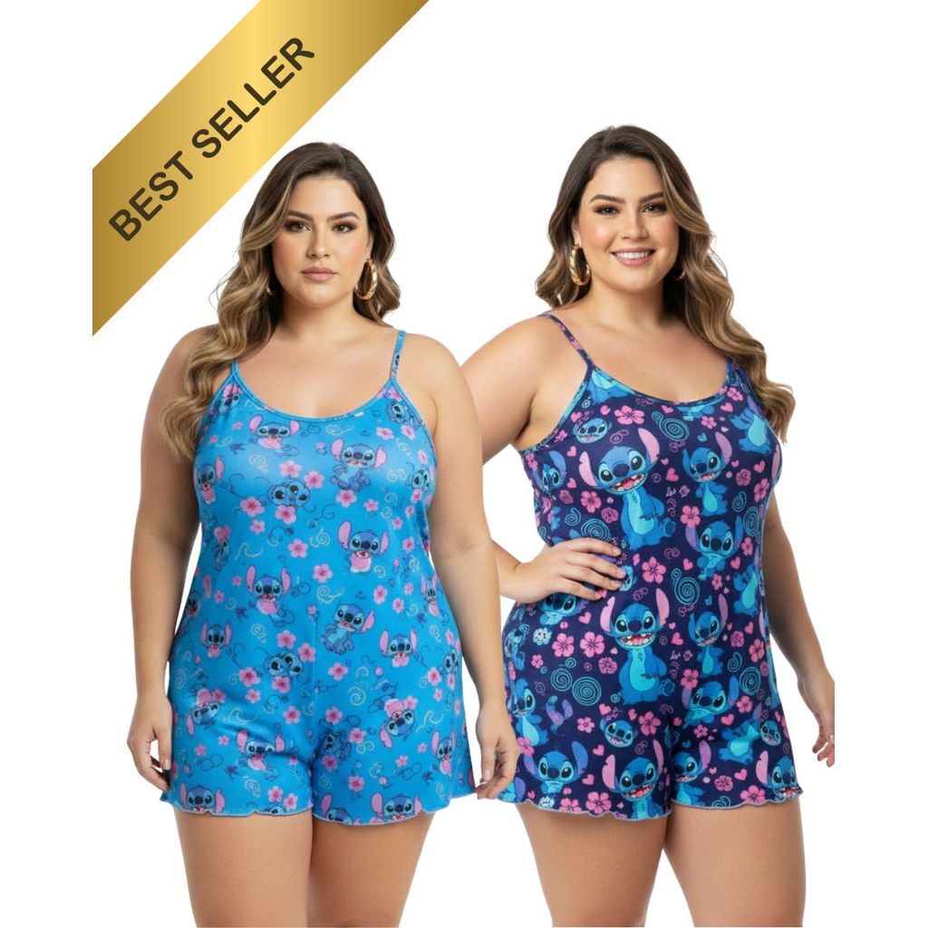 Macaquinho Ondinha Plus Size / Baby Doll Suede / Pijama baby Doll Cropped