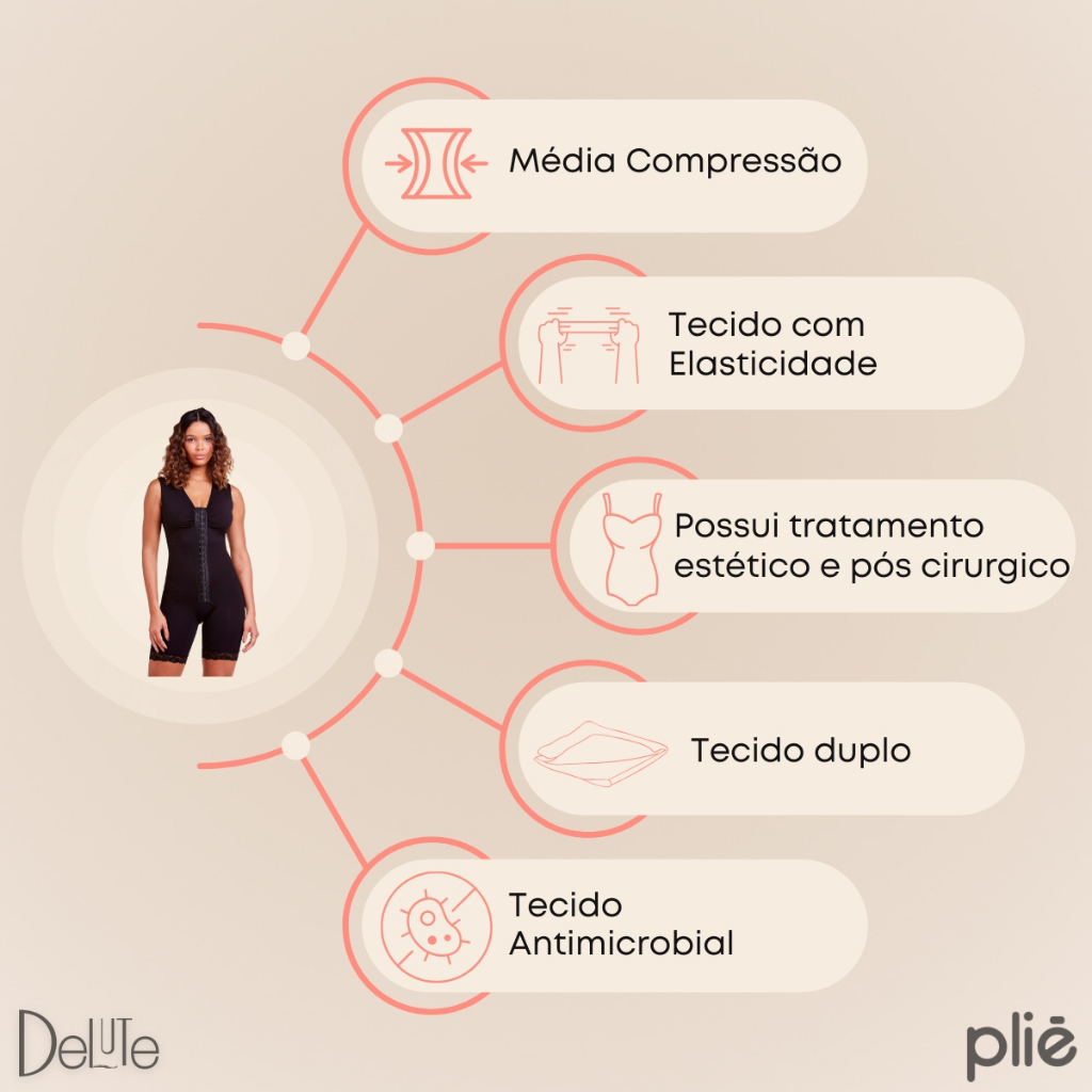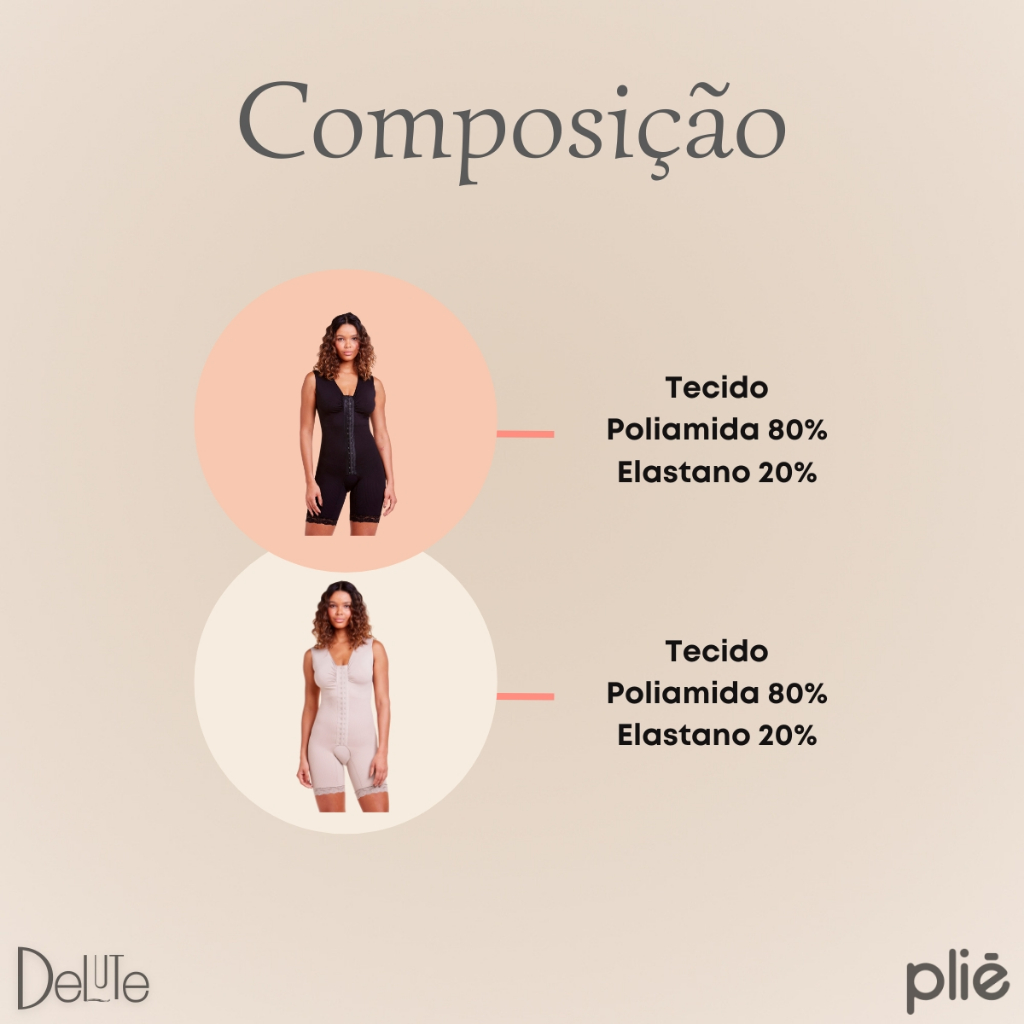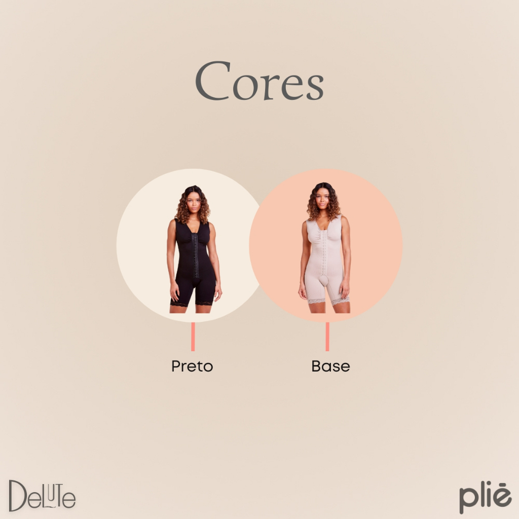 Macaquinho Regata Feminino Plie Control Abertura Frontal com 2 Regulagens Colchetes Forrados Emana