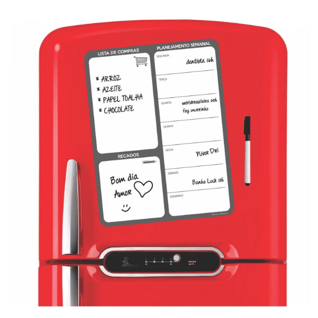 Magnético de Geladeira Imã planner organizador com caneta que escreve e apaga