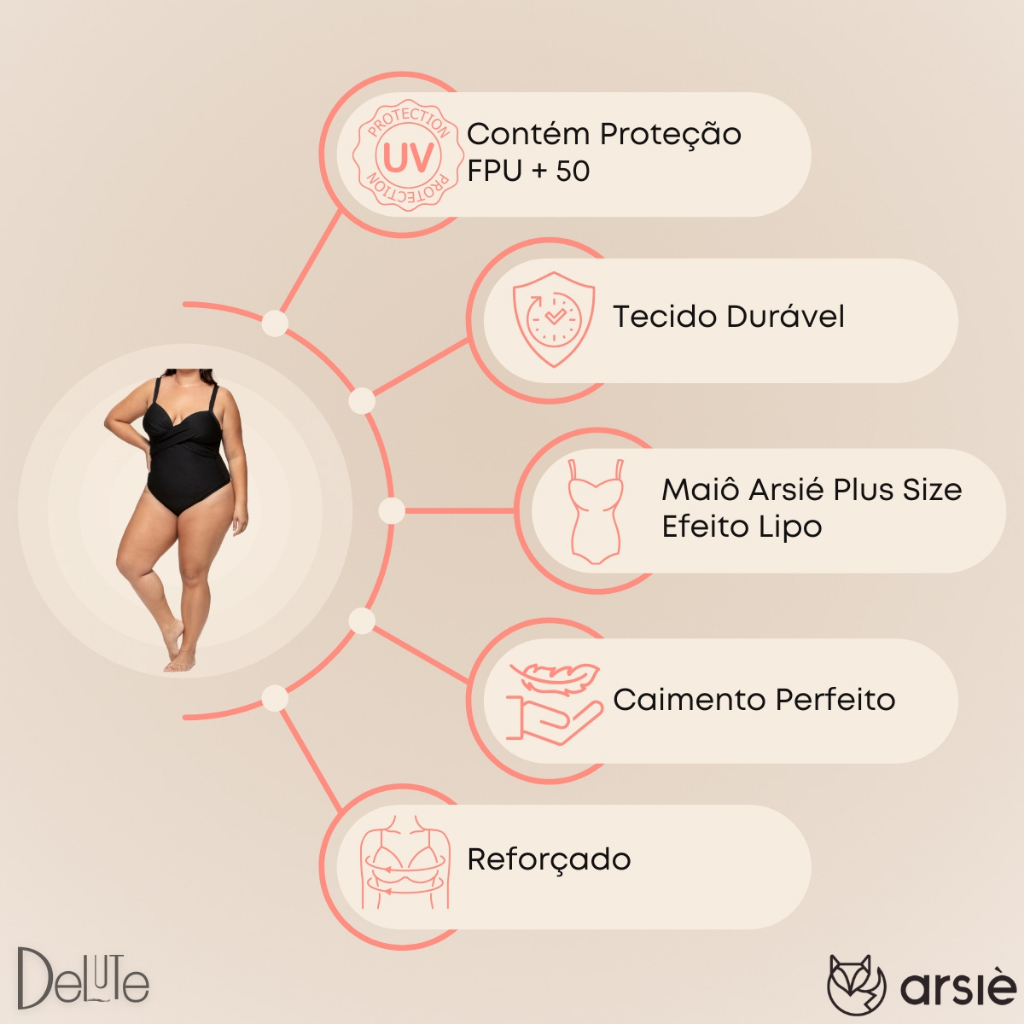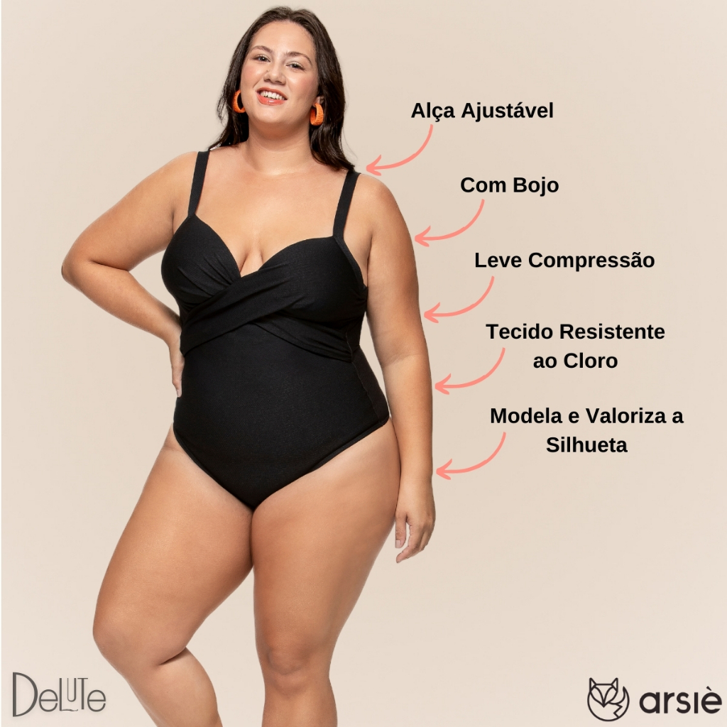 Maiô Arsiè Modelador Efeito Lipo Plus Size com Bojo e Costas Nua Alça Fina e Ajustável Leve Fpu 50+
