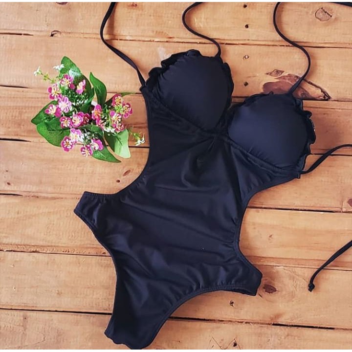 Maiô Body Engana Mamãe Empina Bumbum Riple com Bojo e Forro Preto em poliamida