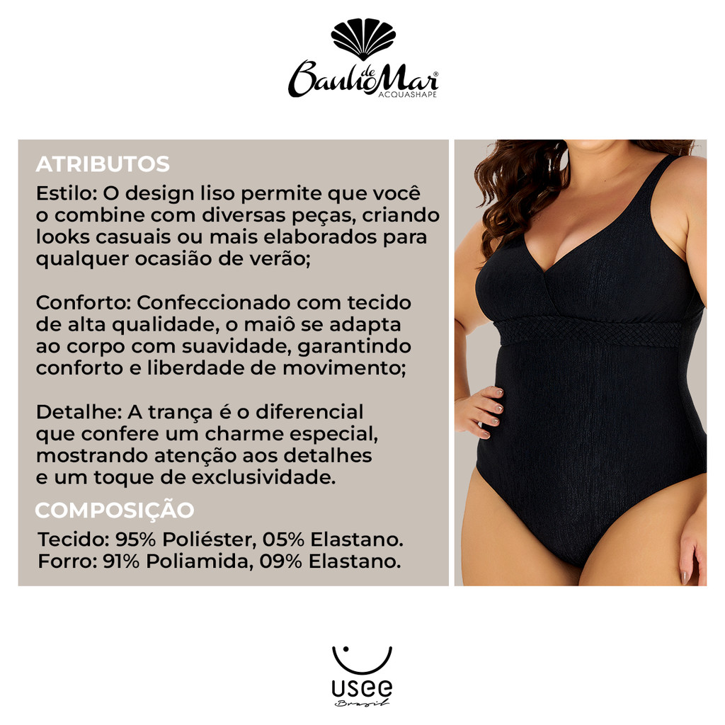 Maiô Classic Tranca Texturizado Plus Size Banho de Mar