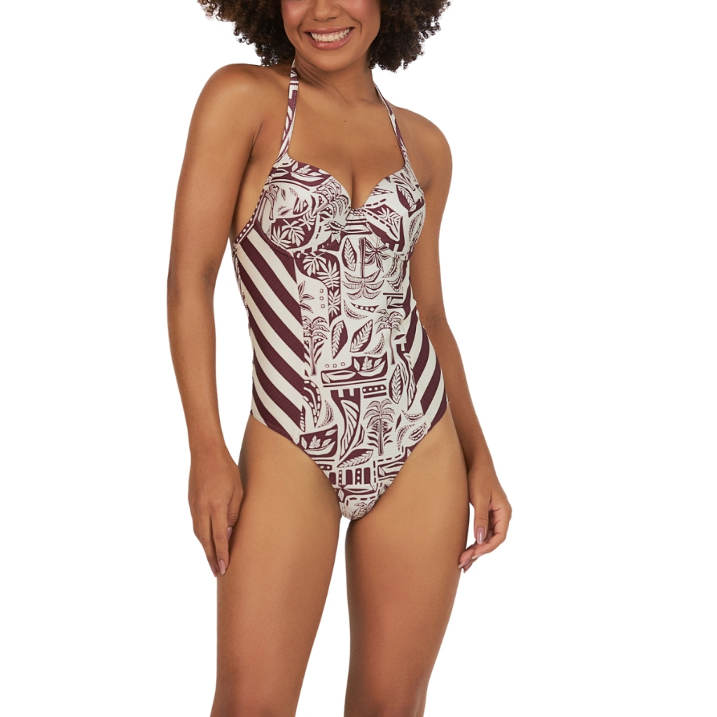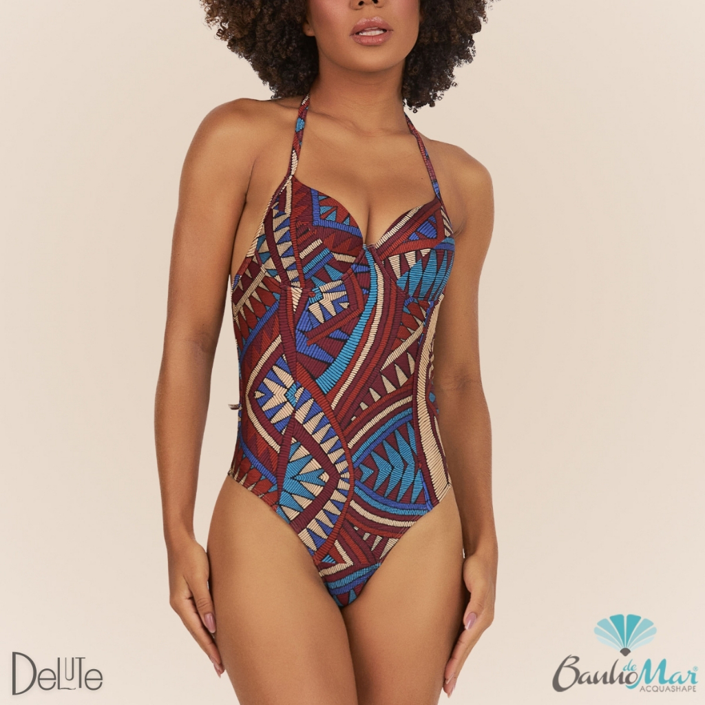 Maio Banho de Mar de Alta Compressao Com Bojo Estampado Efeito Zero Barriga Modela Reduz Fio Dental