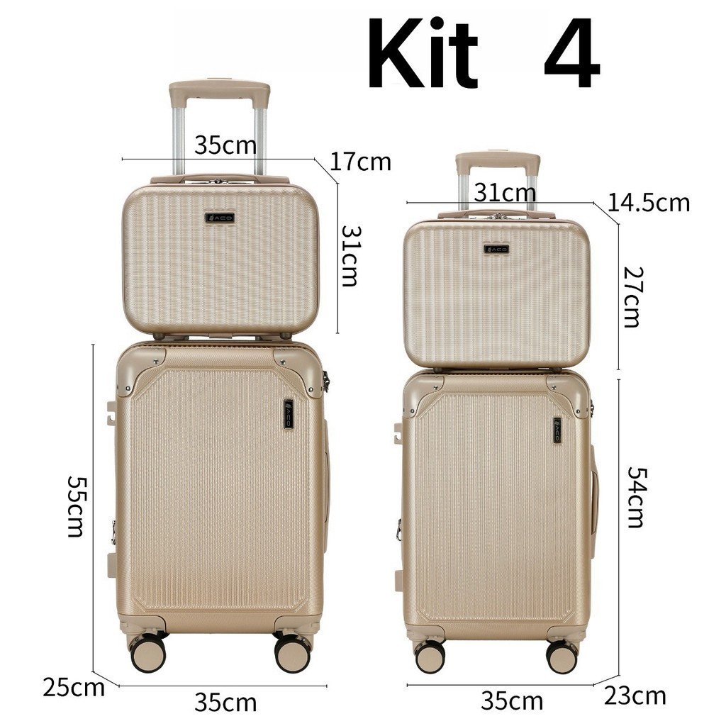 Mala De Bordo/Conjunto Com 4 Malas Para Viagem G/M/P/PP