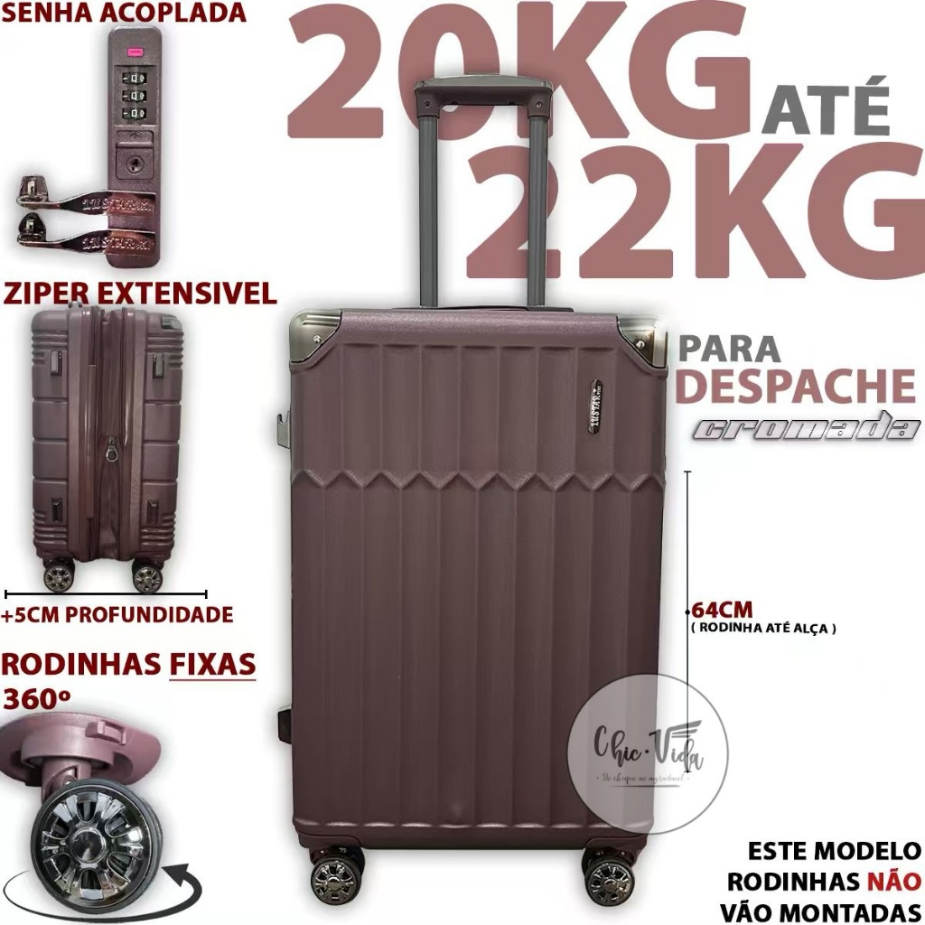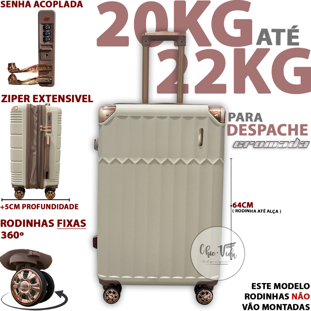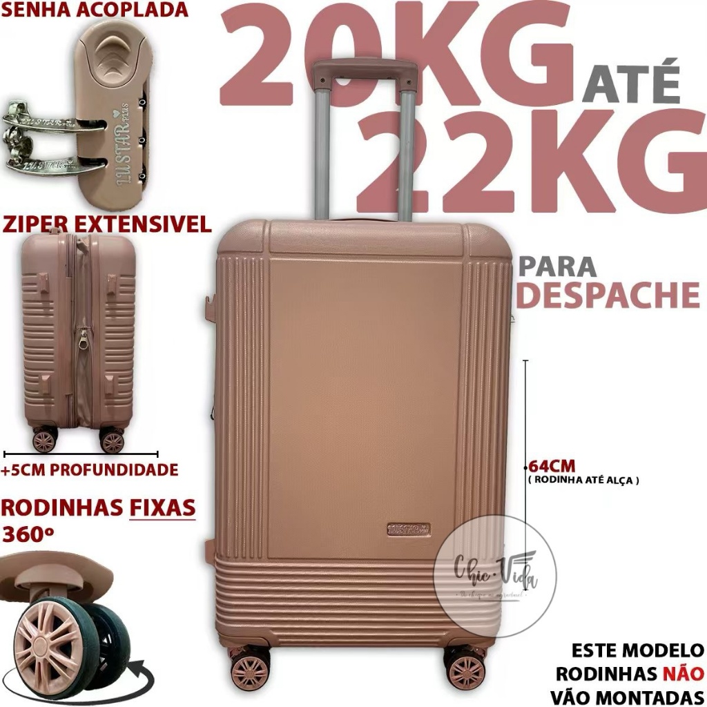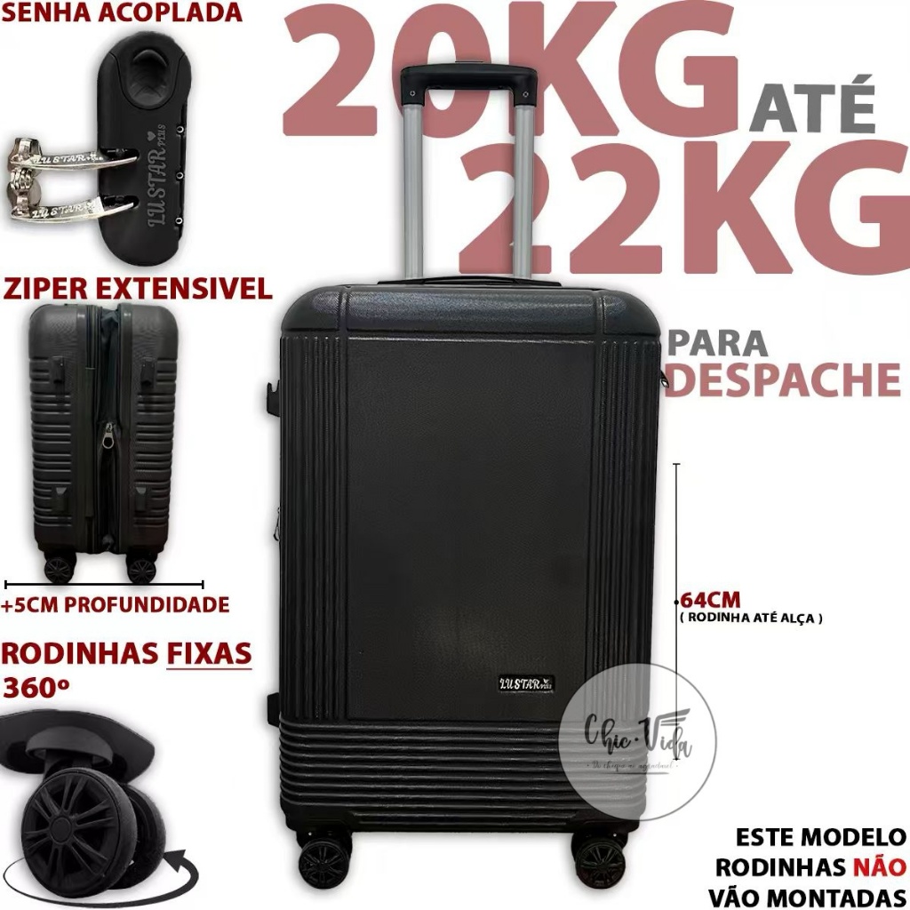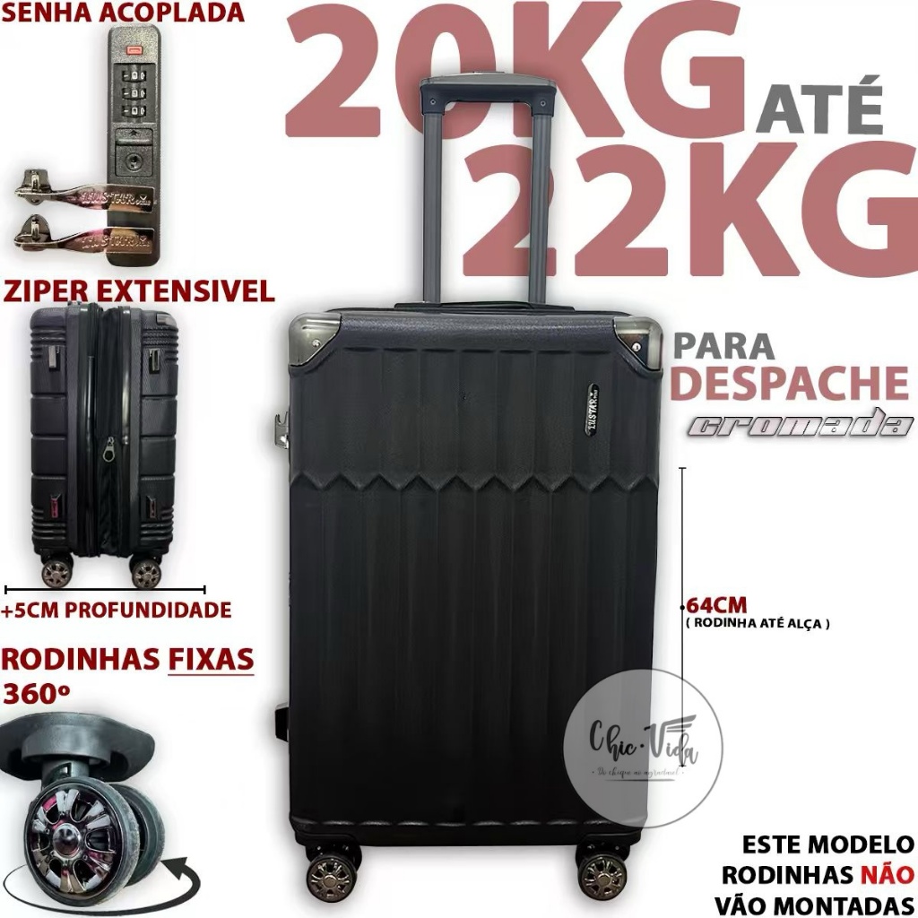 Mala De Viagem 20kg -23Kg ABS Despachar Mala Media 20Kilos - 23 Kilos Com Roda 360 E Senha Promoção