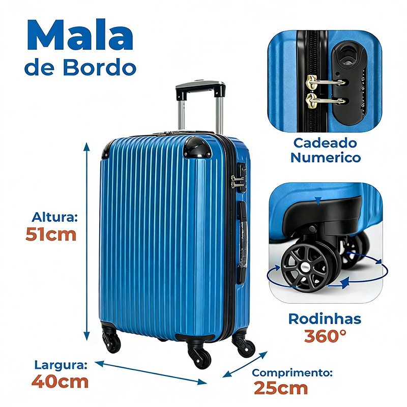 Mala de bordo 9KG -10KG ABS com senha mala de viagem 10kilos com roda 360 ANAC padrao promoção-2401