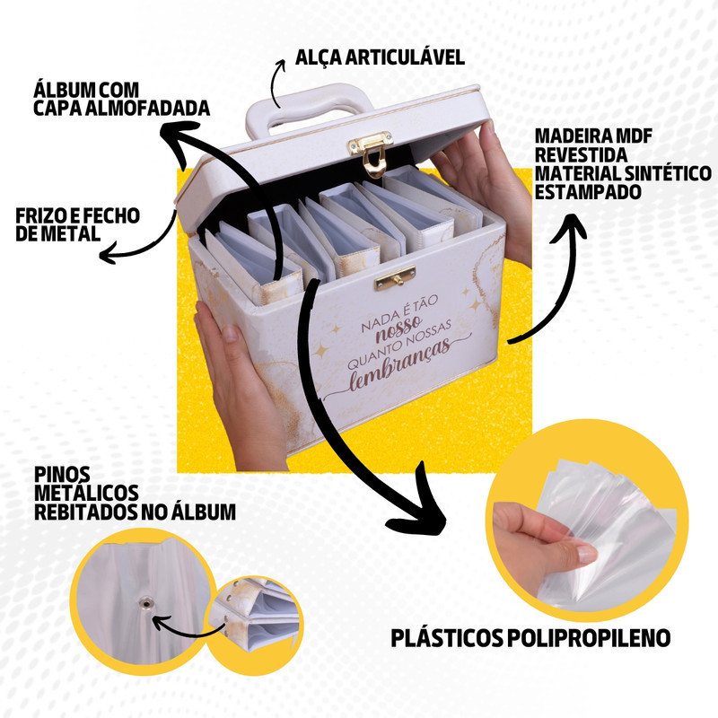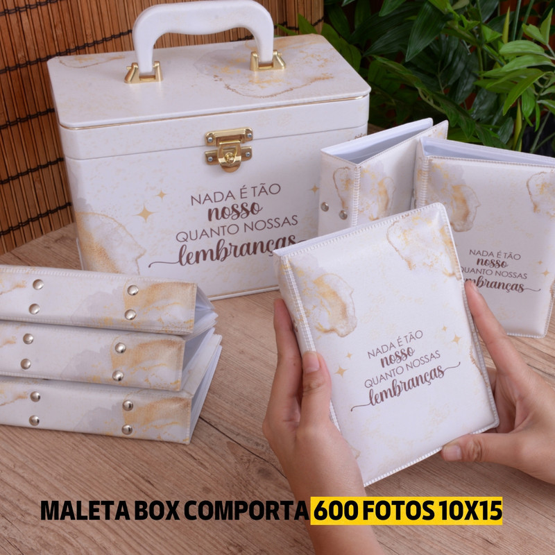 Maleta Box 10x15 600 fotos 6 Álbuns Fotográficos LEMBRANÇAS BRANCO Jovem Adulto Memórias