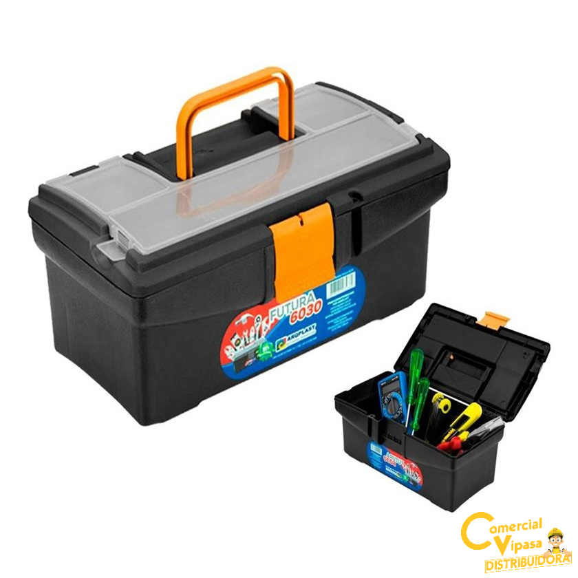 Maleta Caixa Para Ferramentas Manuais Futura 6030 Guardar Organizar Reforçada Preta Com Alça