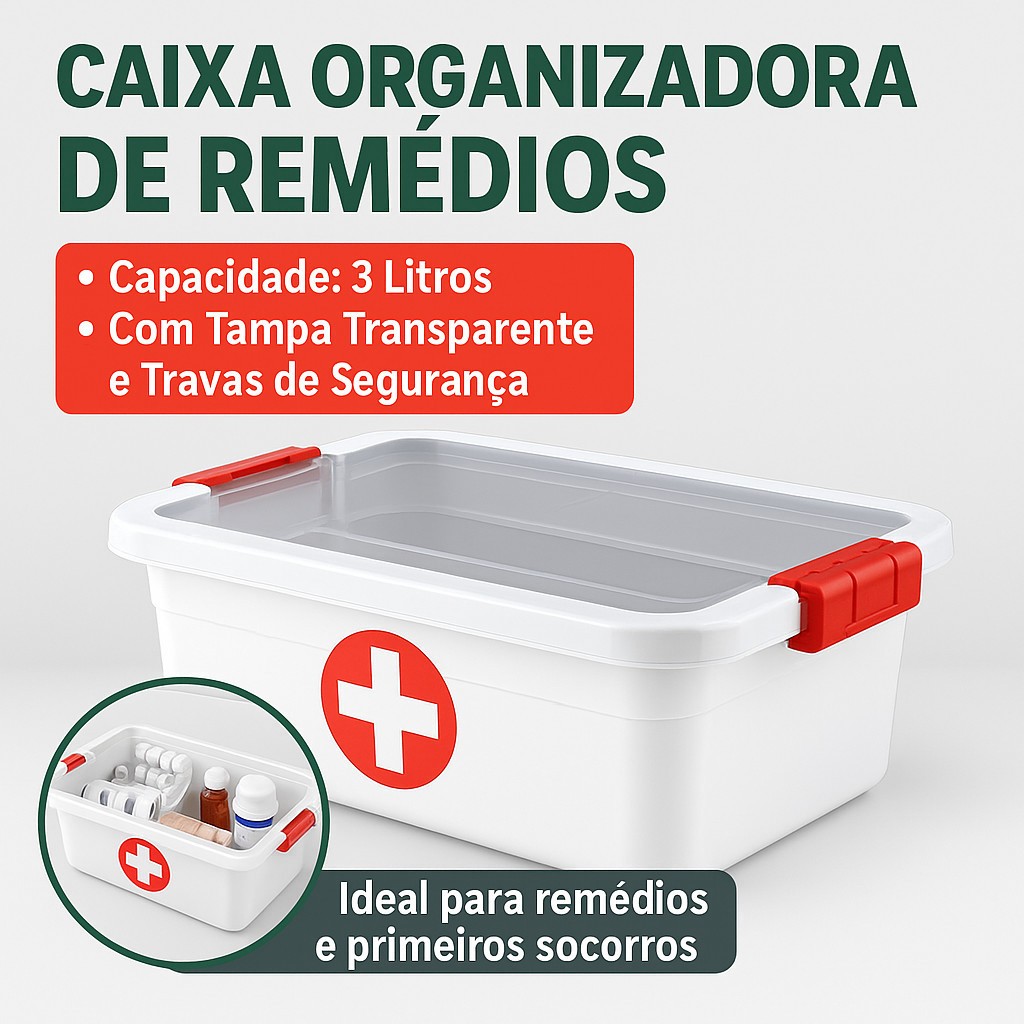 Maleta Caixa Remedios Cosmetic Box Primeiros Socorros - Tamanho Grande/Media/Pequena - Transparente