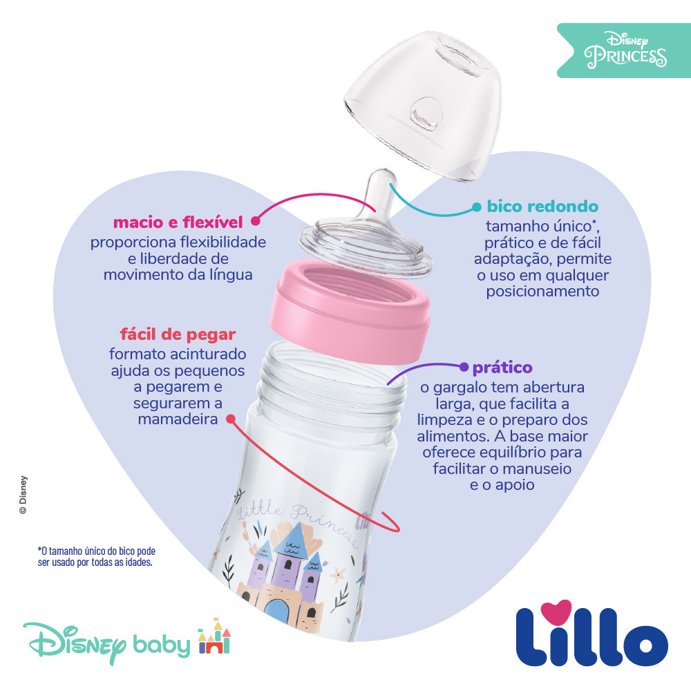 Mamadeira Bico Silicone Redondo Disney 6m+ 300ml Rosa Lillo
