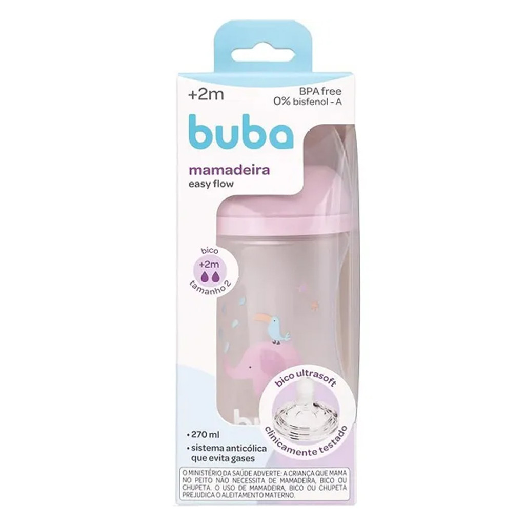 Mamadeira Buba Easy Flow Elefante Rosa 270ml