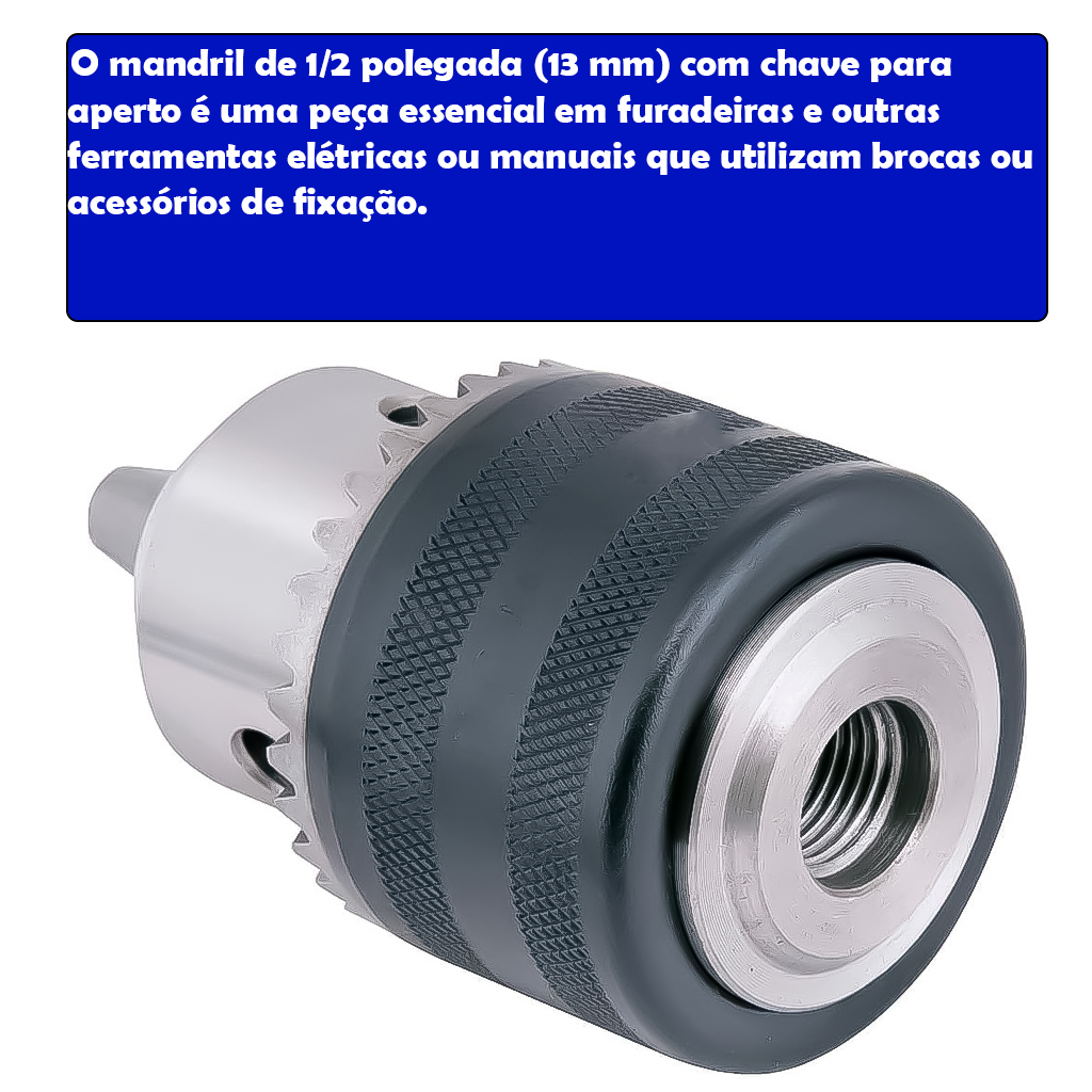 Mandril Segura Brocas Para Furadeira Rosca 13mm 1/2 Pol + Chave Aperto