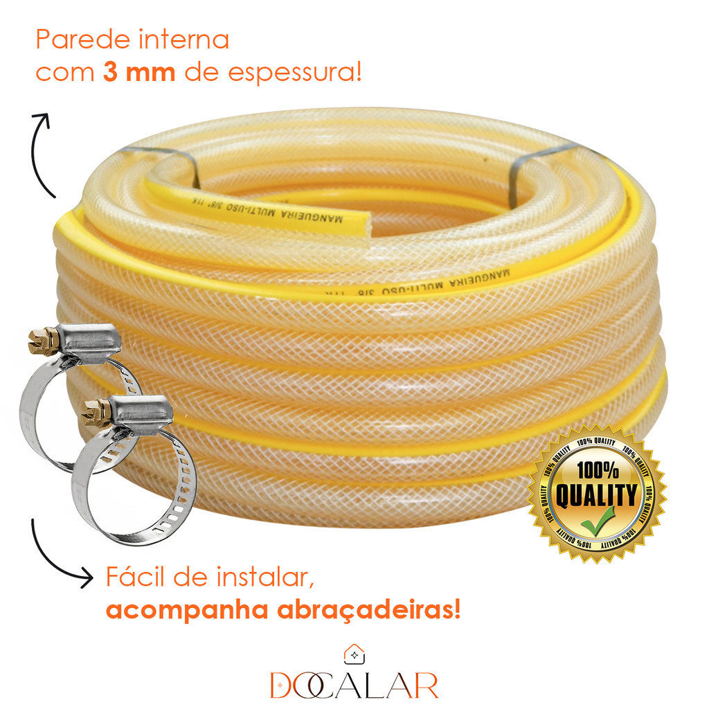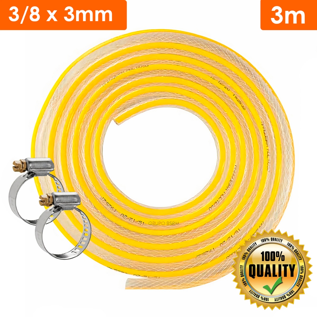 Mangueira de Gás Cozinha Fogão Botijão GLP Trançada 3/8 x 3 mm + 2 Abraçadeiras 1/2/3/4/5 Metros