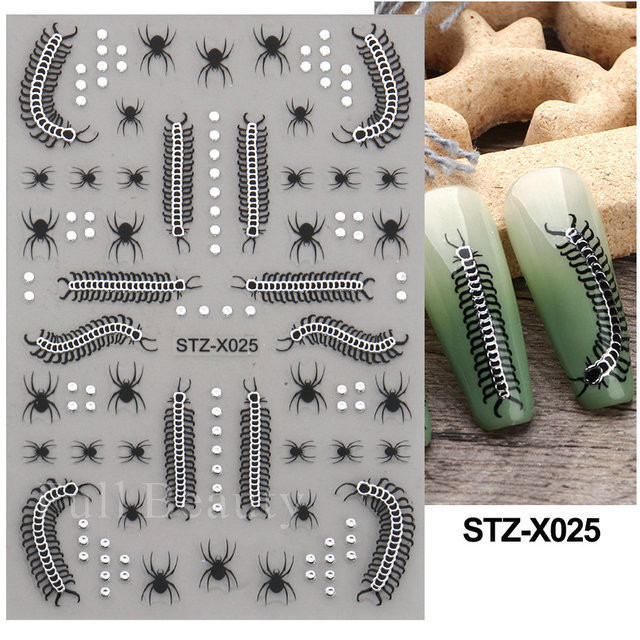 Manicure de Halloween Decalque de Manicure Preto Decalque de Manicure de Halloween Adesivo de Unhas de Morcego de Aranha