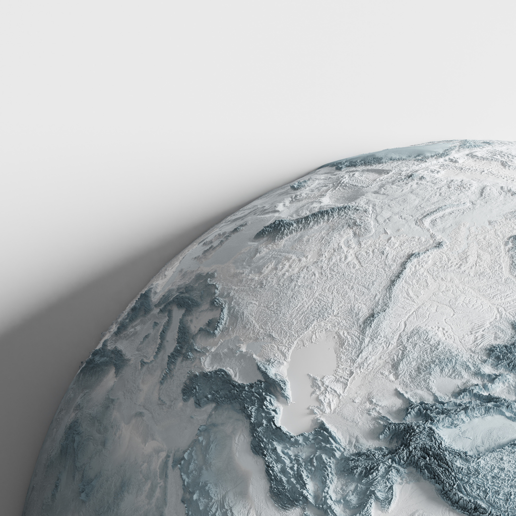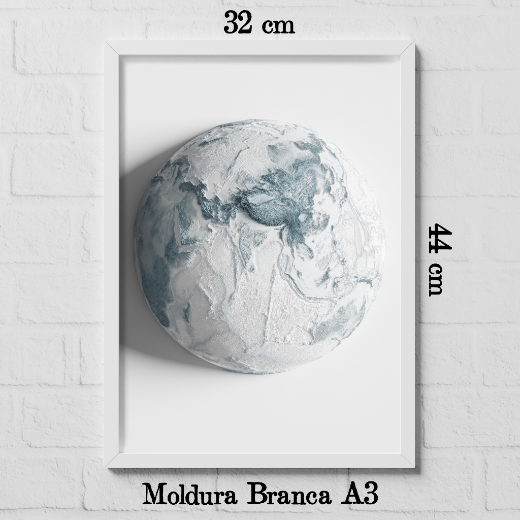 Mapa Mundi Batimétrico Centralizado na Ásia e Oceania de Relevo Artístico - Globo