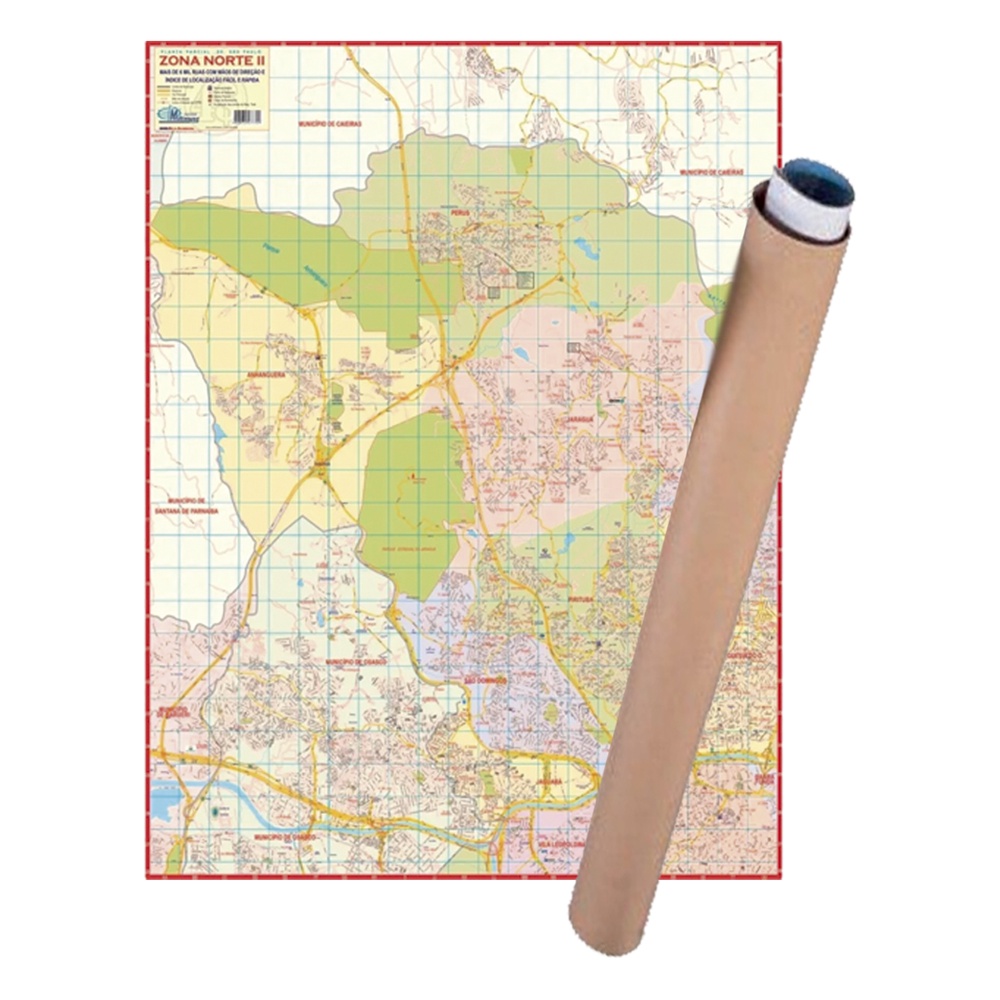 Mapa SP Zona Norte 2 Enrolado Laminado Gigante 120x90cm - Atual