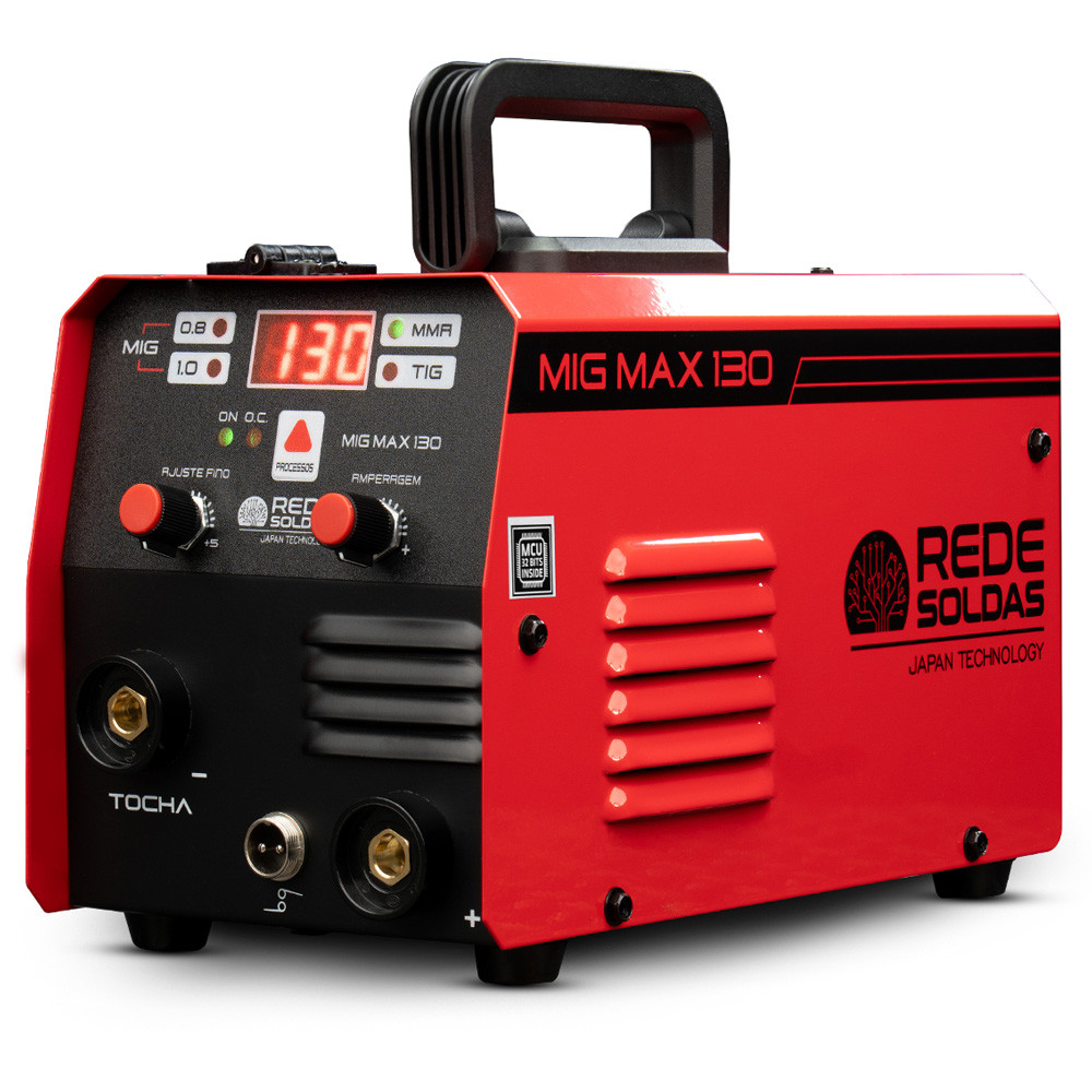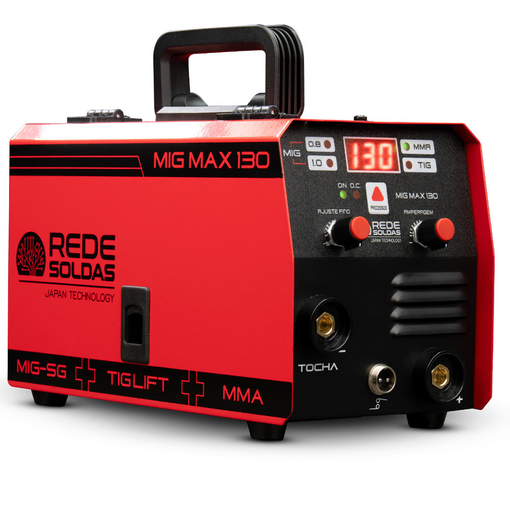 Maquina Aparelho Inversor de Solda 3 em 1 Mig MAX 130 Amperes Sinergico Tig Eletrodo RedeSoldas
