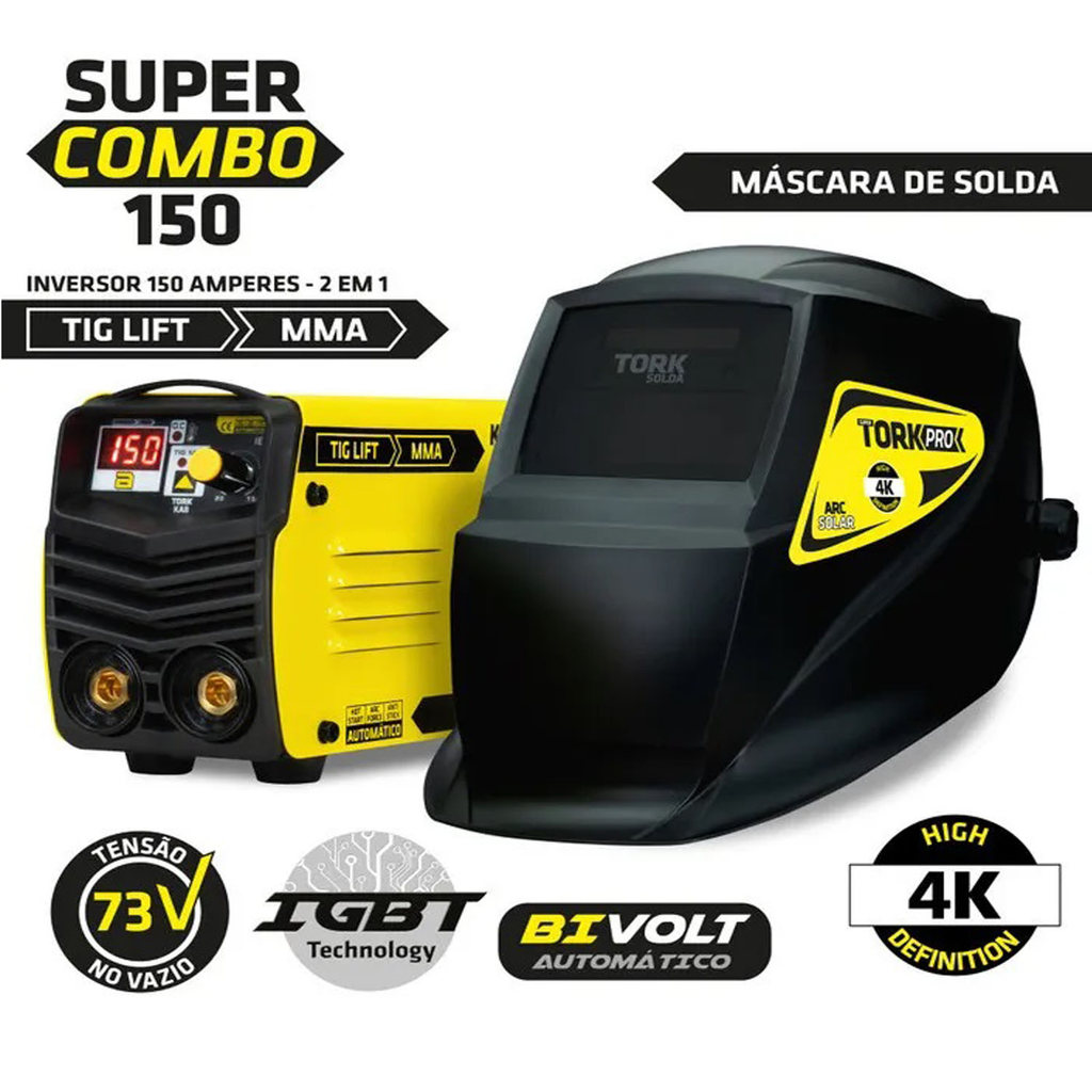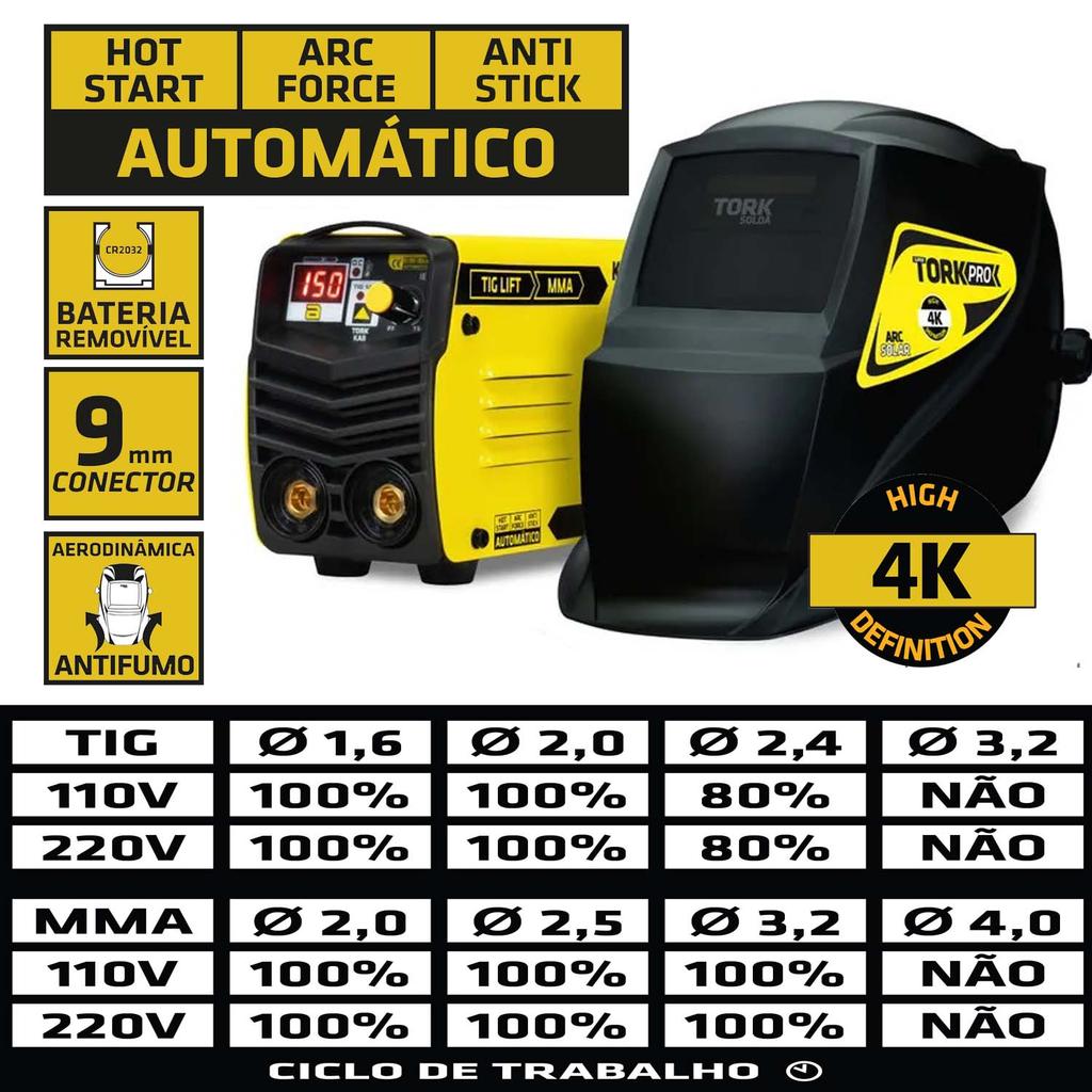 Maquina Aparelho Solda 150A Bivolt MMA Tig Mascara Tork