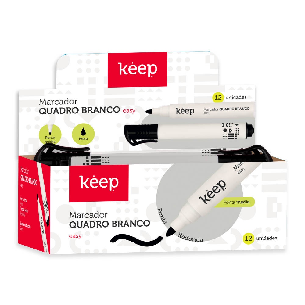 Marcador de Quadro Branco Easy 12un. Preto Keep MR009
