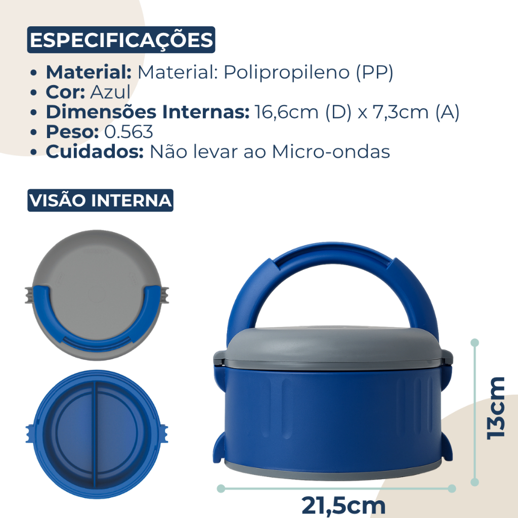 Marmita Térmica Plus 1,5L Com Divisória Dupla e Alça Compacta Soprano