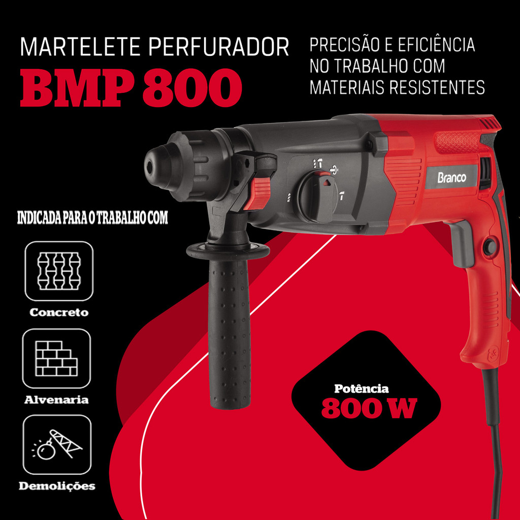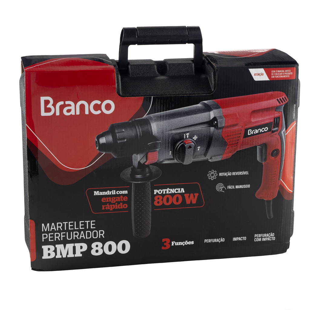 Martelete Perfurador 800W 2,8J Engate Rápido SDS Branco BMP800 com Maleta Brocas