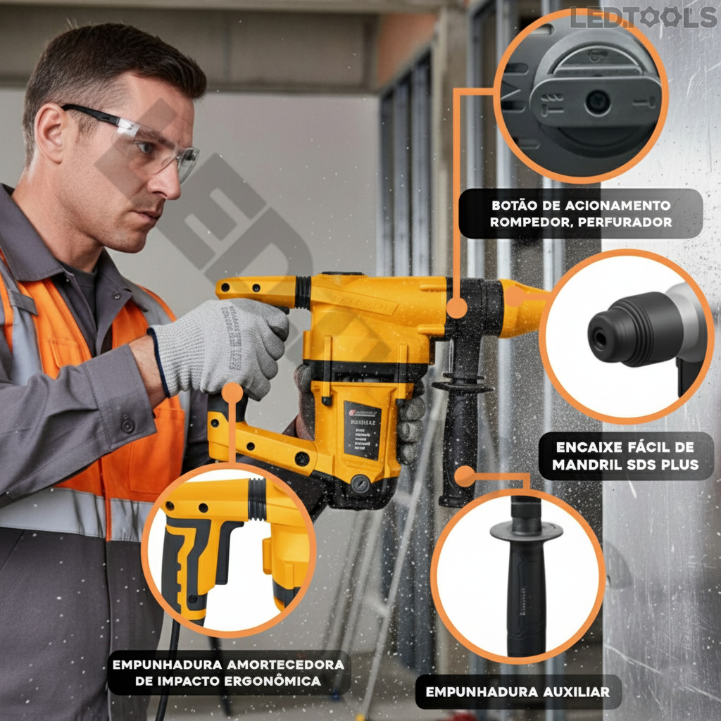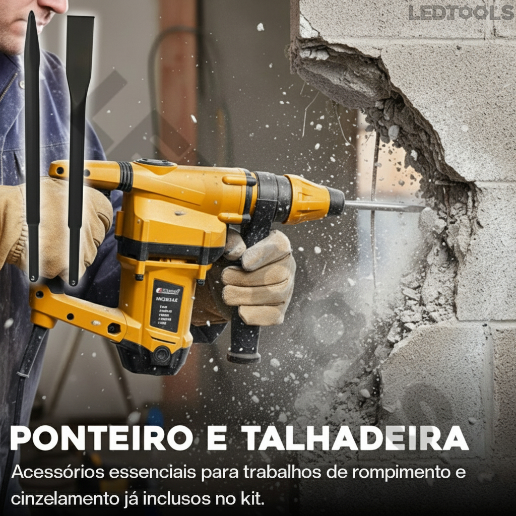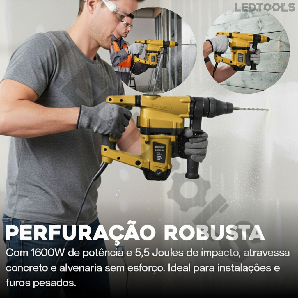 Martelete Perfurador e Rompedor 1600W 6 Joules 5,6kg SDS Plus com Kit e Maleta