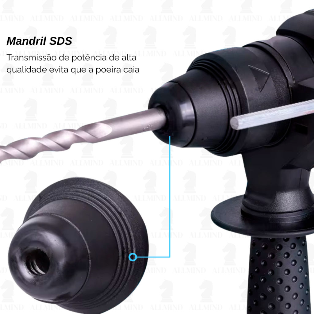 Martelete Rotativo Furadeira Martelo Rompedor de Impacto 1200w 12 peças com maleta