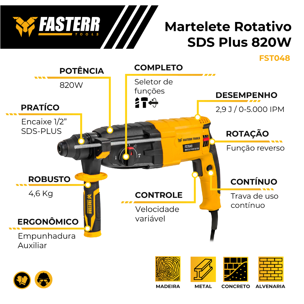 Martelete Rotativo Rompedor 800W 220V FST048 - Fasterr