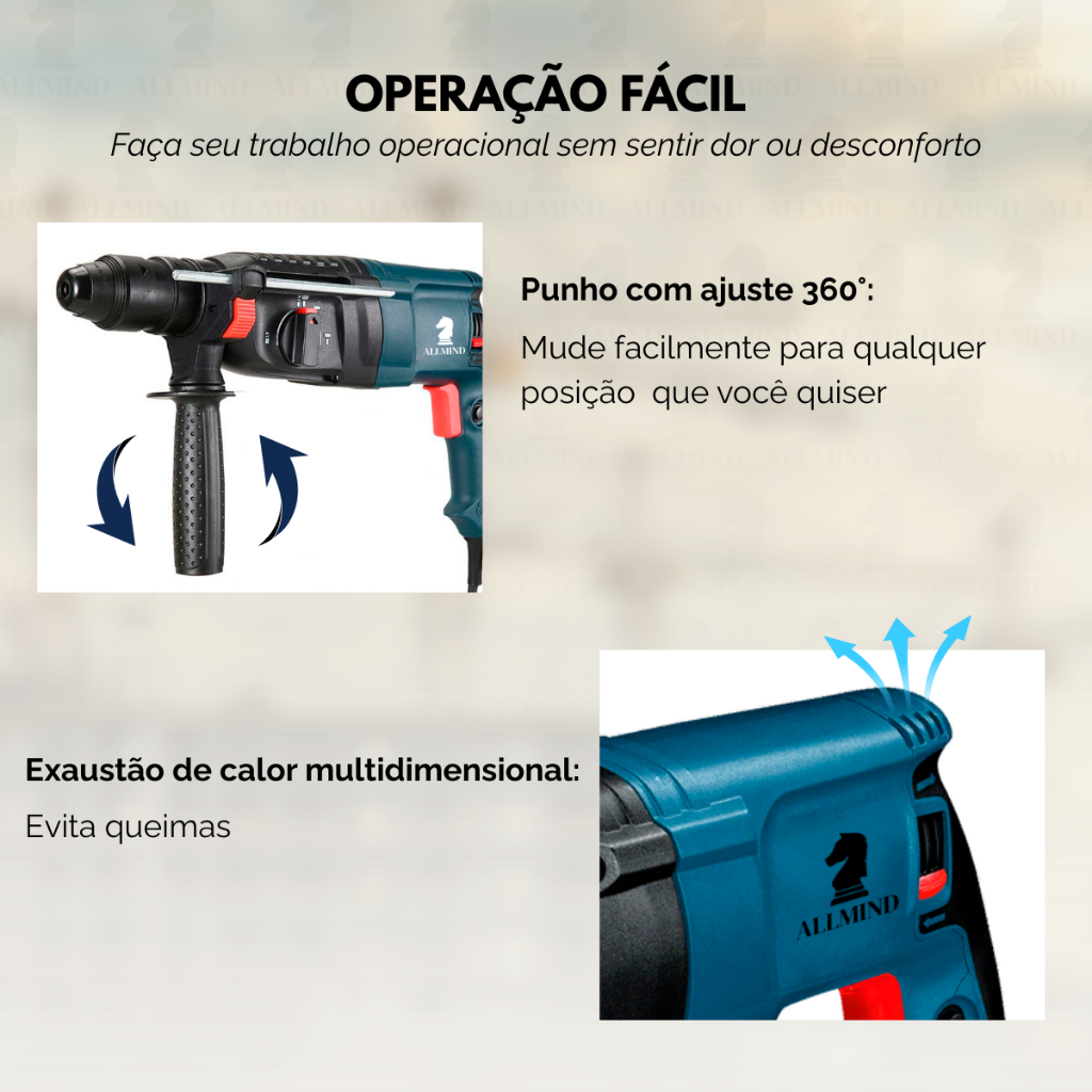 Martelete Rotativo Rompedor Furadeira Industrial Martelo 12 Peças 1200w Profissional Sds-Plus