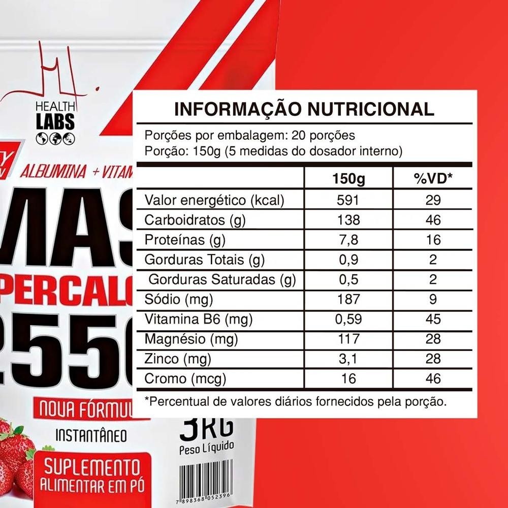 Mass 25500 Health Labs Sabor Morango 3kg