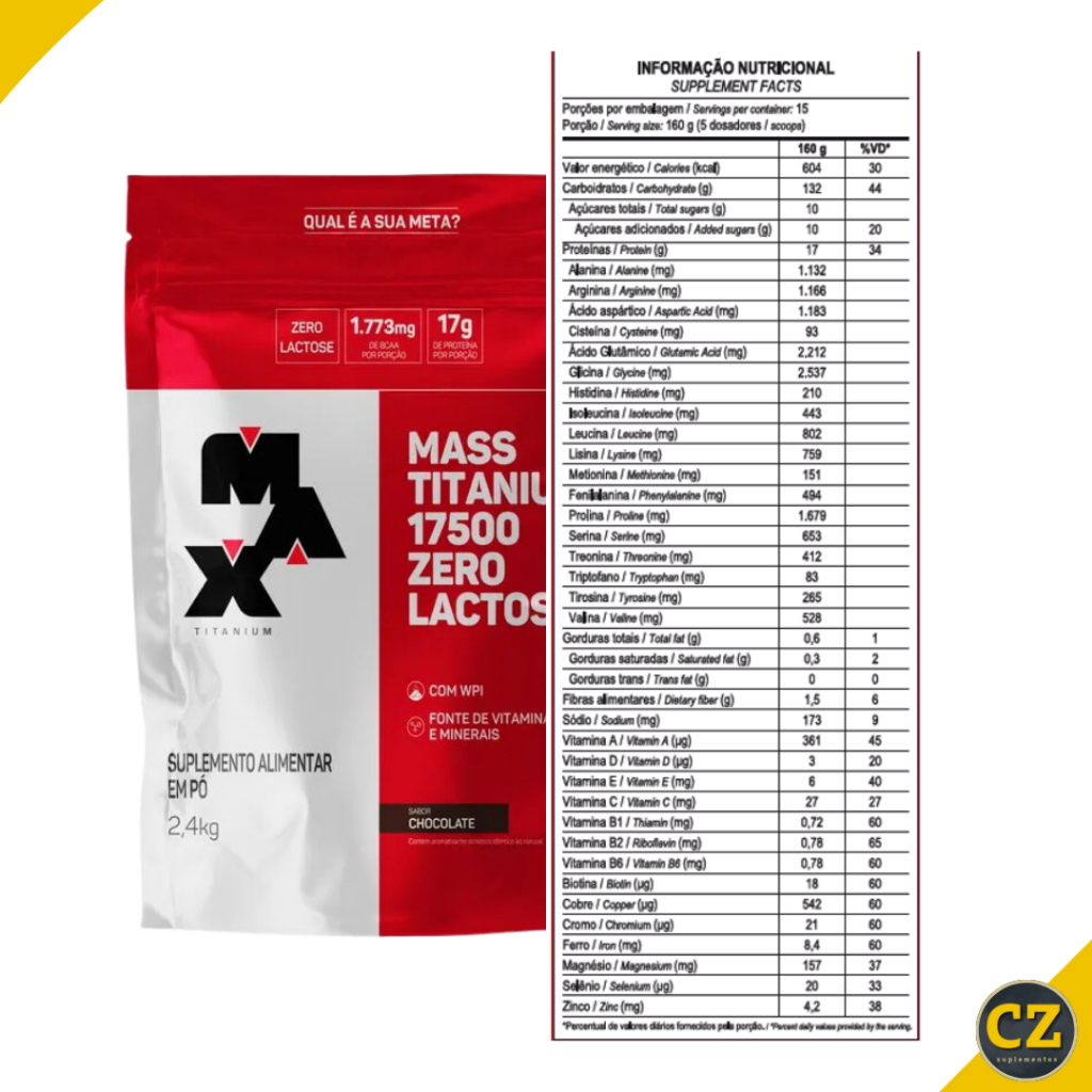 Mass Titanium 17500 Zero Lactose (2,4kg) - Max Titanium