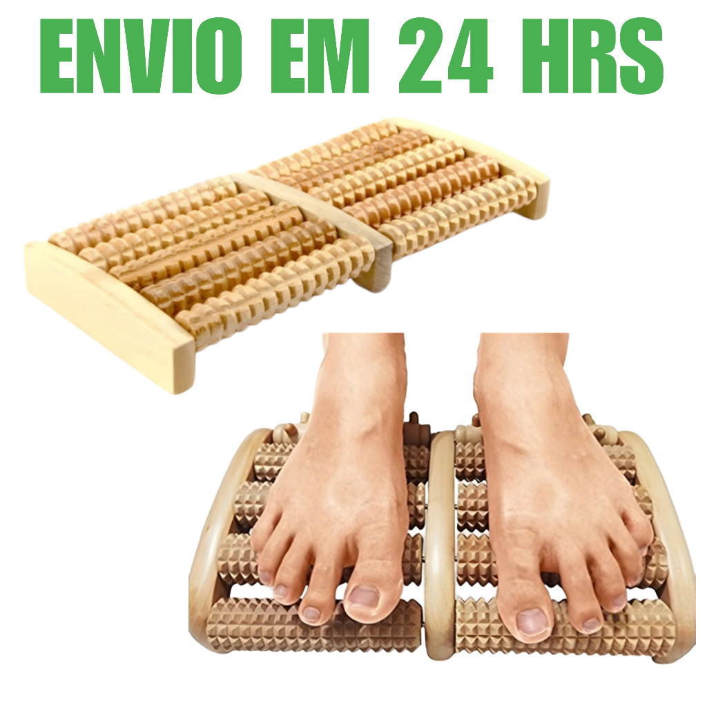 Massageador Para Pés 5 Rolos Em Madeira Natural Terapia Relaxante Anti-stress