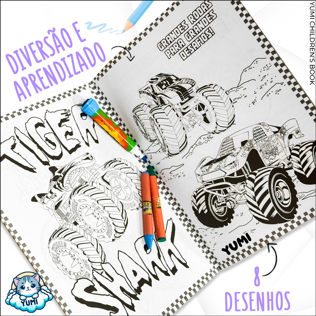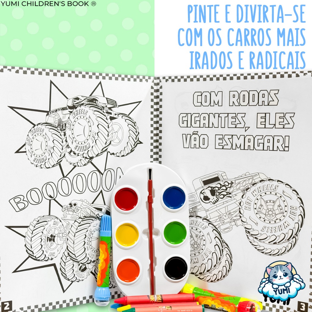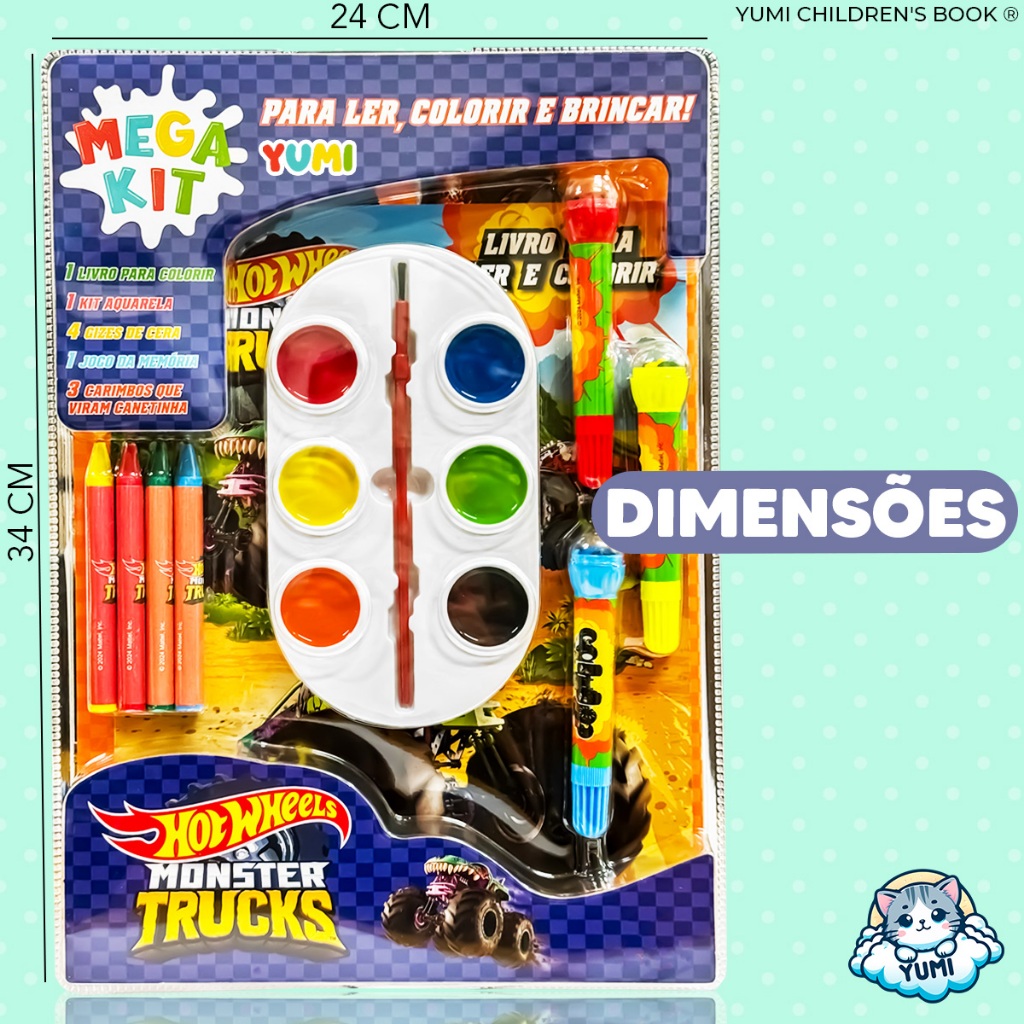 Mega Kit Colorir Hot Wheels - Livro Infantil De Colorir + Canetinhas + Carimbos + Giz + Jogo Educativo Oficial