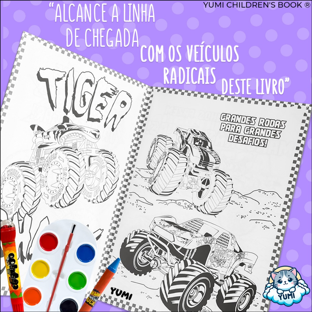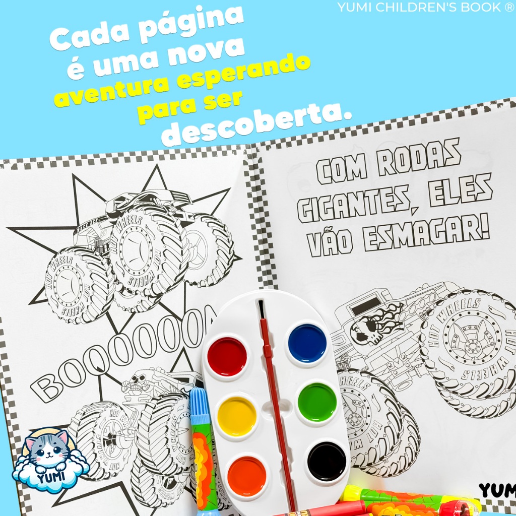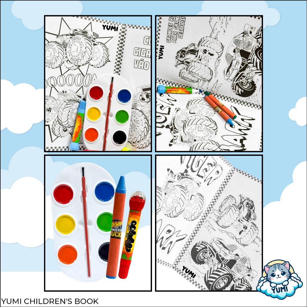 Mega Kit Colorir Hot Wheels - Livro Infantil De Colorir + Canetinhas + Carimbos + Giz + Jogo Educativo Oficial