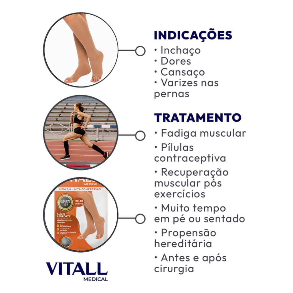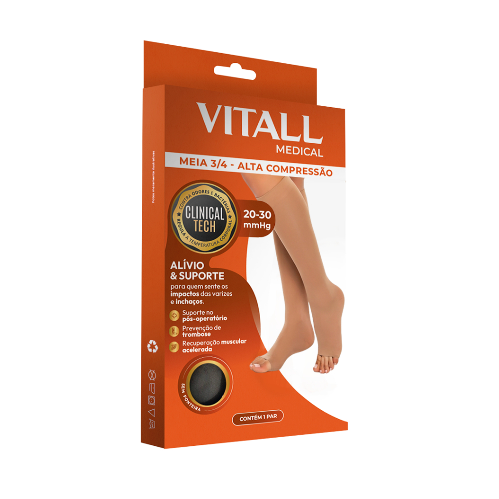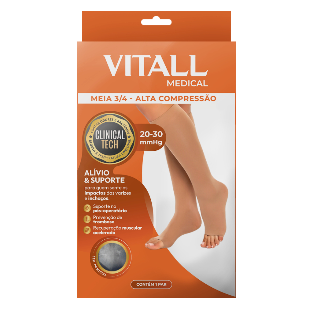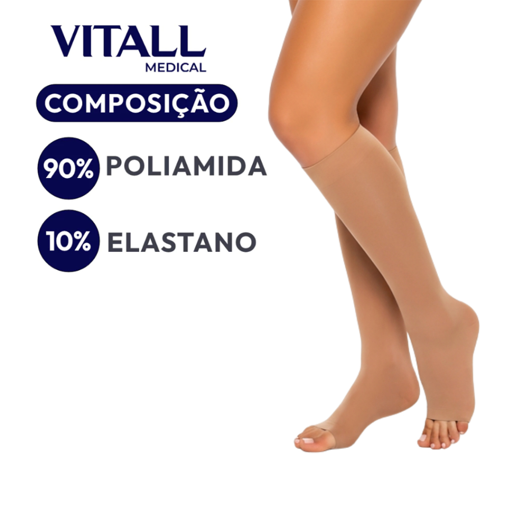 Meia 3/4 Vitall Medical Alta Compressão Sem Ponteira 20-30 mmHg - O par