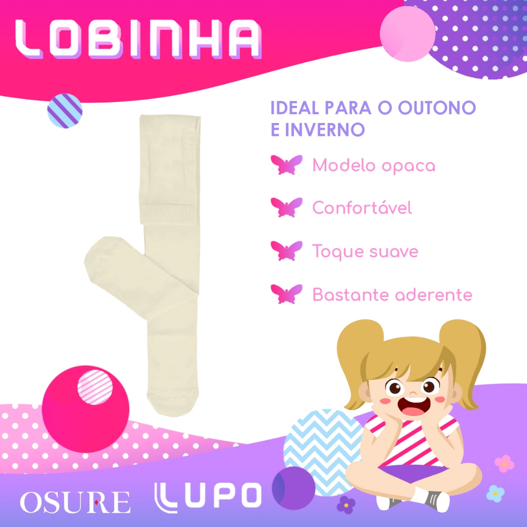 Meia Calça Infantil Lupo Original Menina Fio 80 Lobinha Inverno Frio Térmica Opaca Grossa