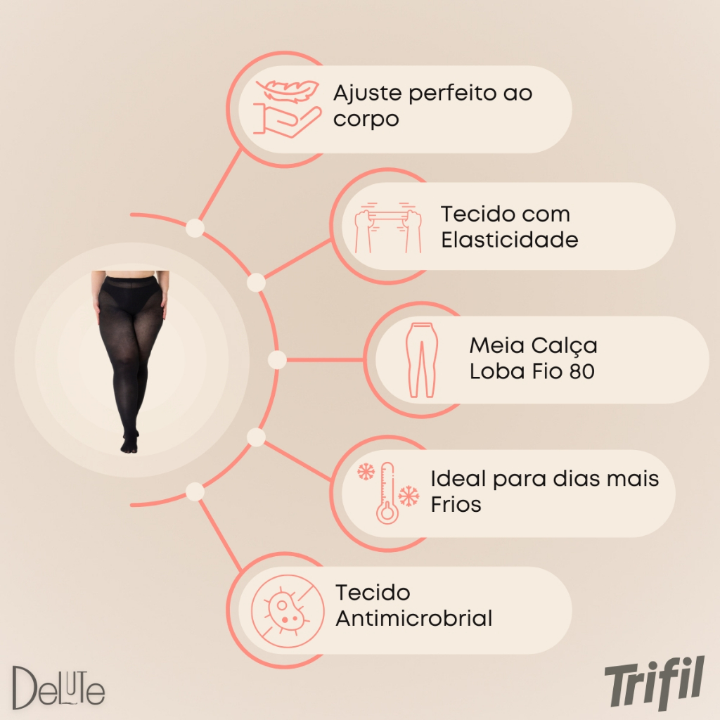 Meia Calca Trifil Fio 80 Plus Size Opaca Grossa Adulto Feminina Classica Resistente e Duravel