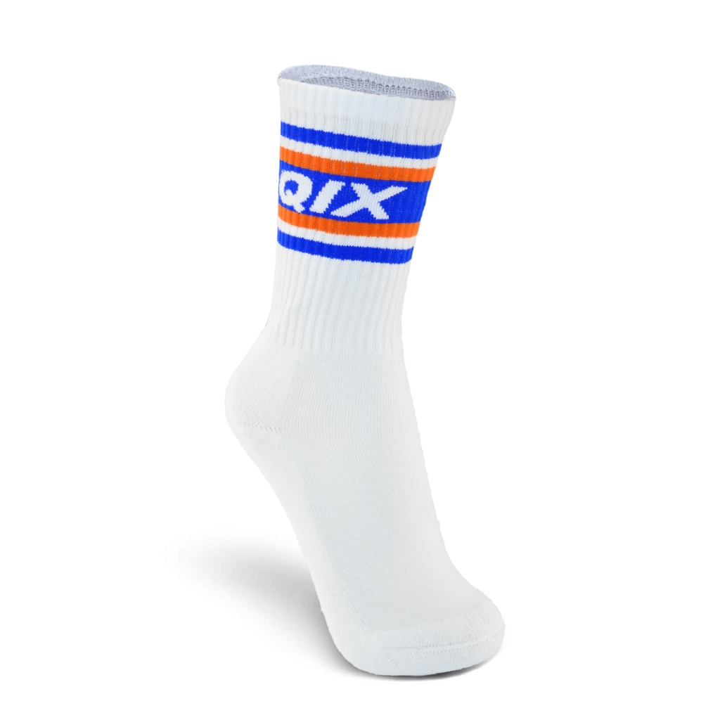 Meia QIX International Cano Médio Branco Old School Macio Algodão