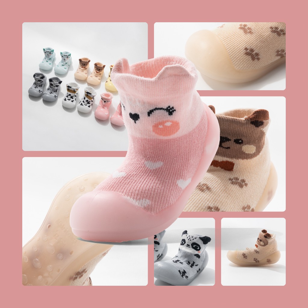 Meia com Sola Sortida Bebê com Emborrachada Antiderrapante Infantil Menina Menino