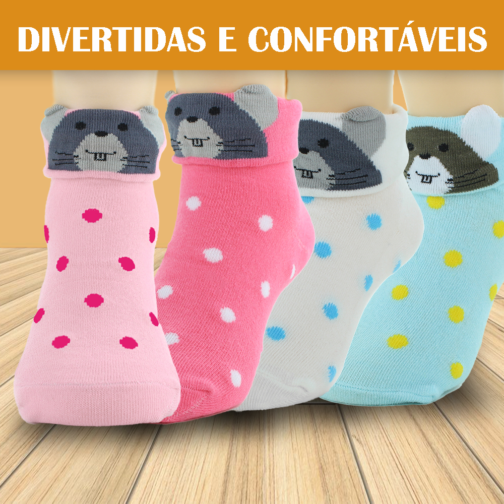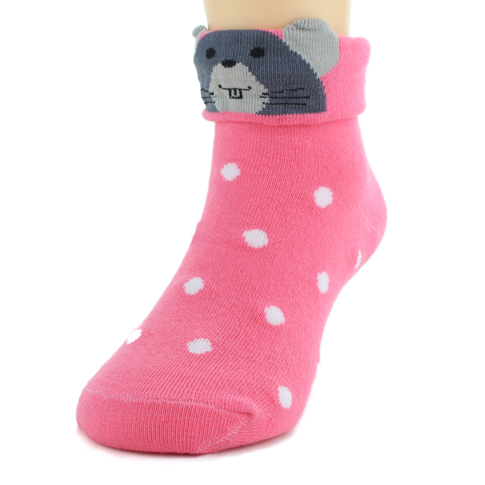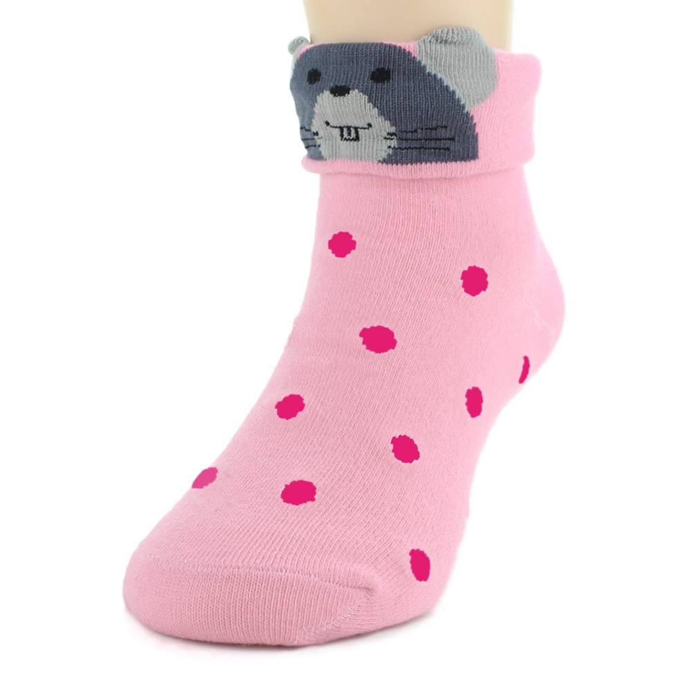 Meia infantil com estampa de bolinhas,cano dobrável com estampa de rato algodão WZ3088