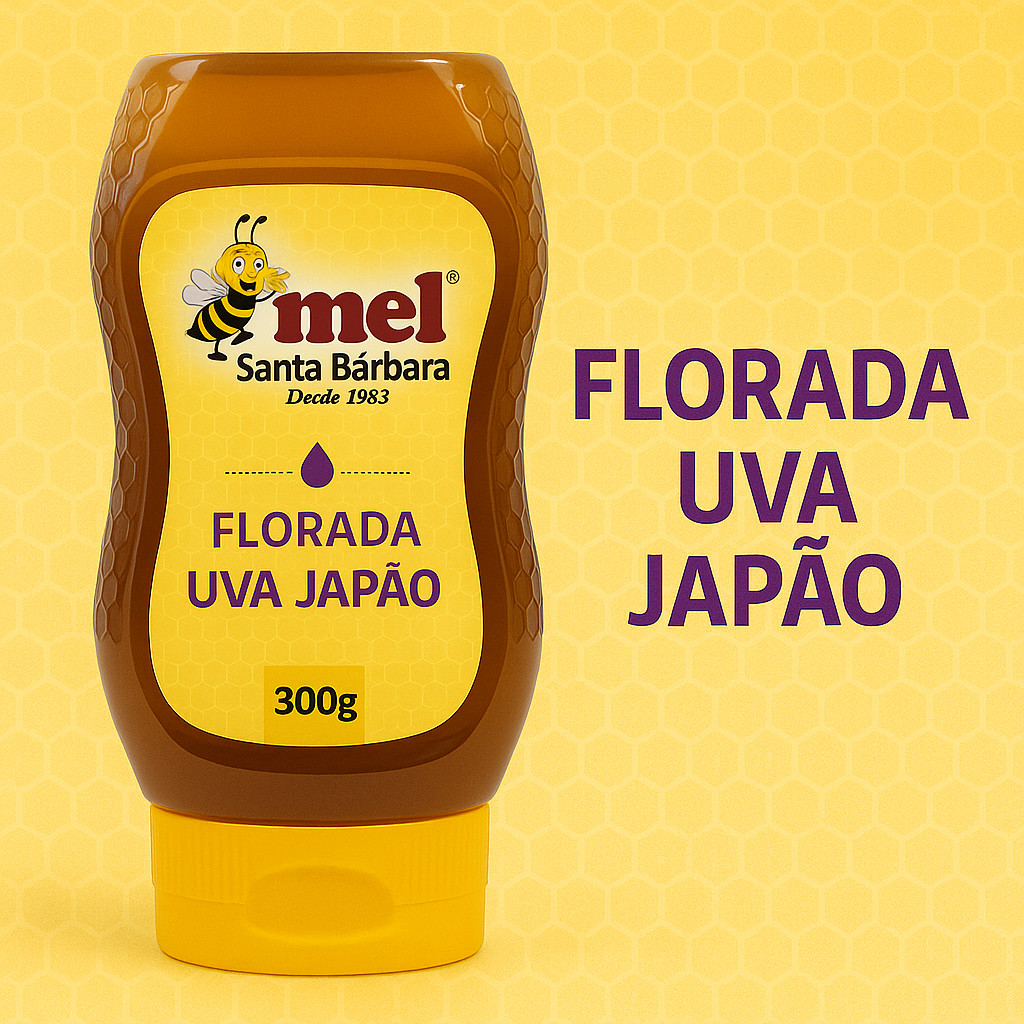 Mel Bisnaga 300g FLORADA DE UVA JAPÃO – Mel Puro e Natural | Tampa Corta-Gotas | Sabor Suave