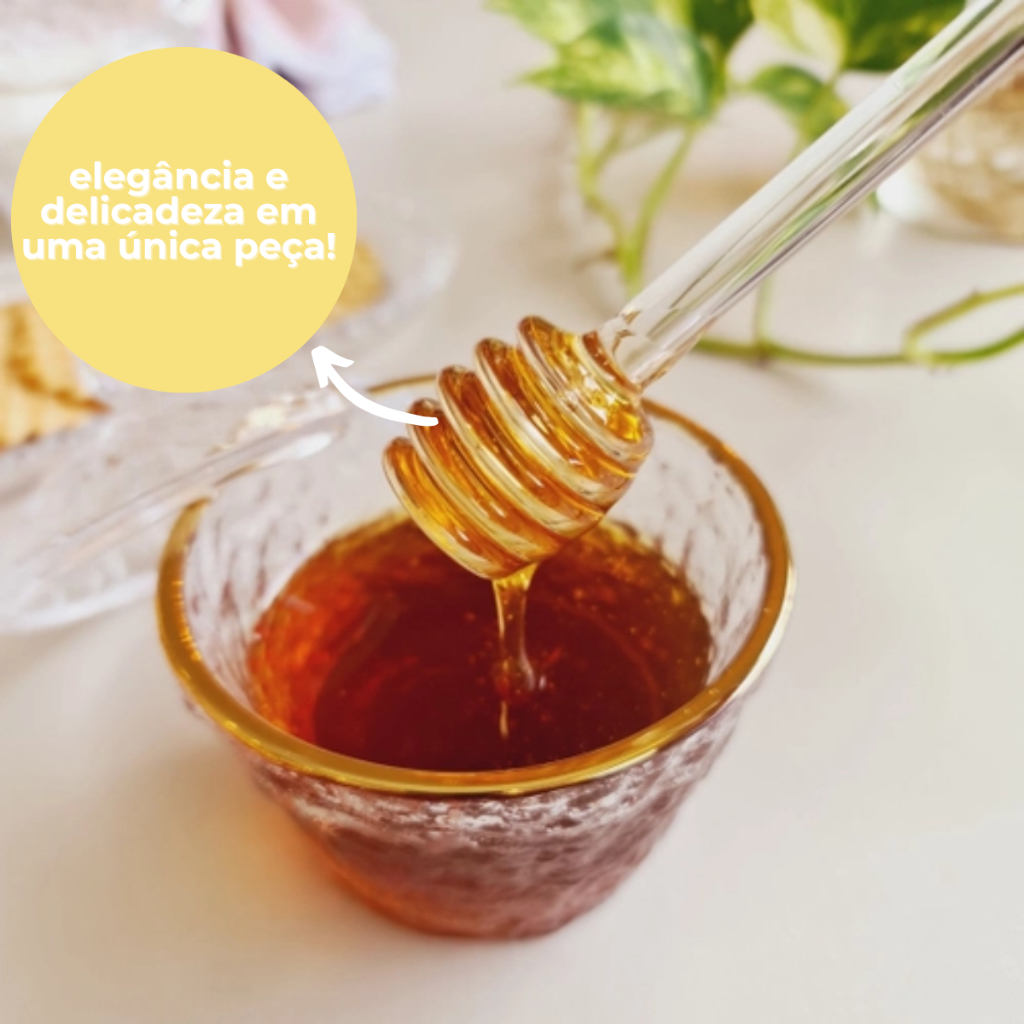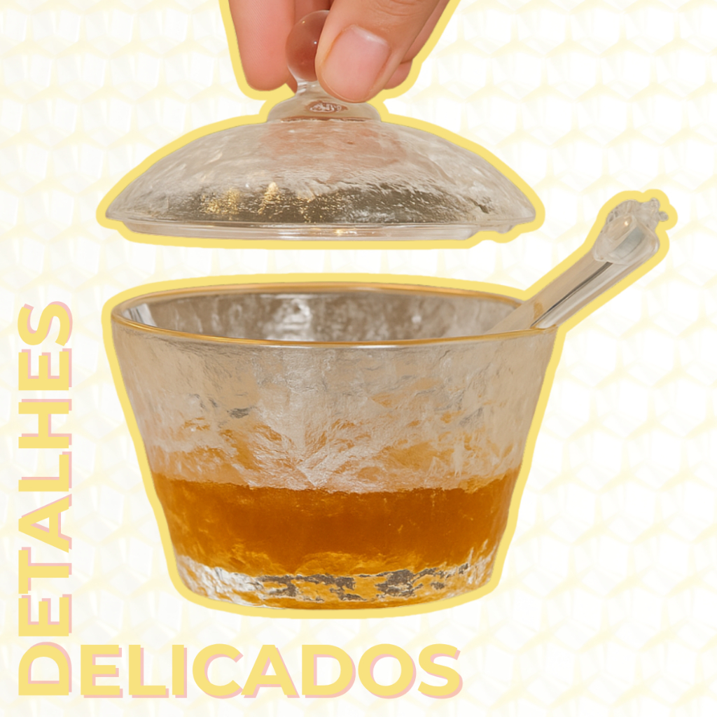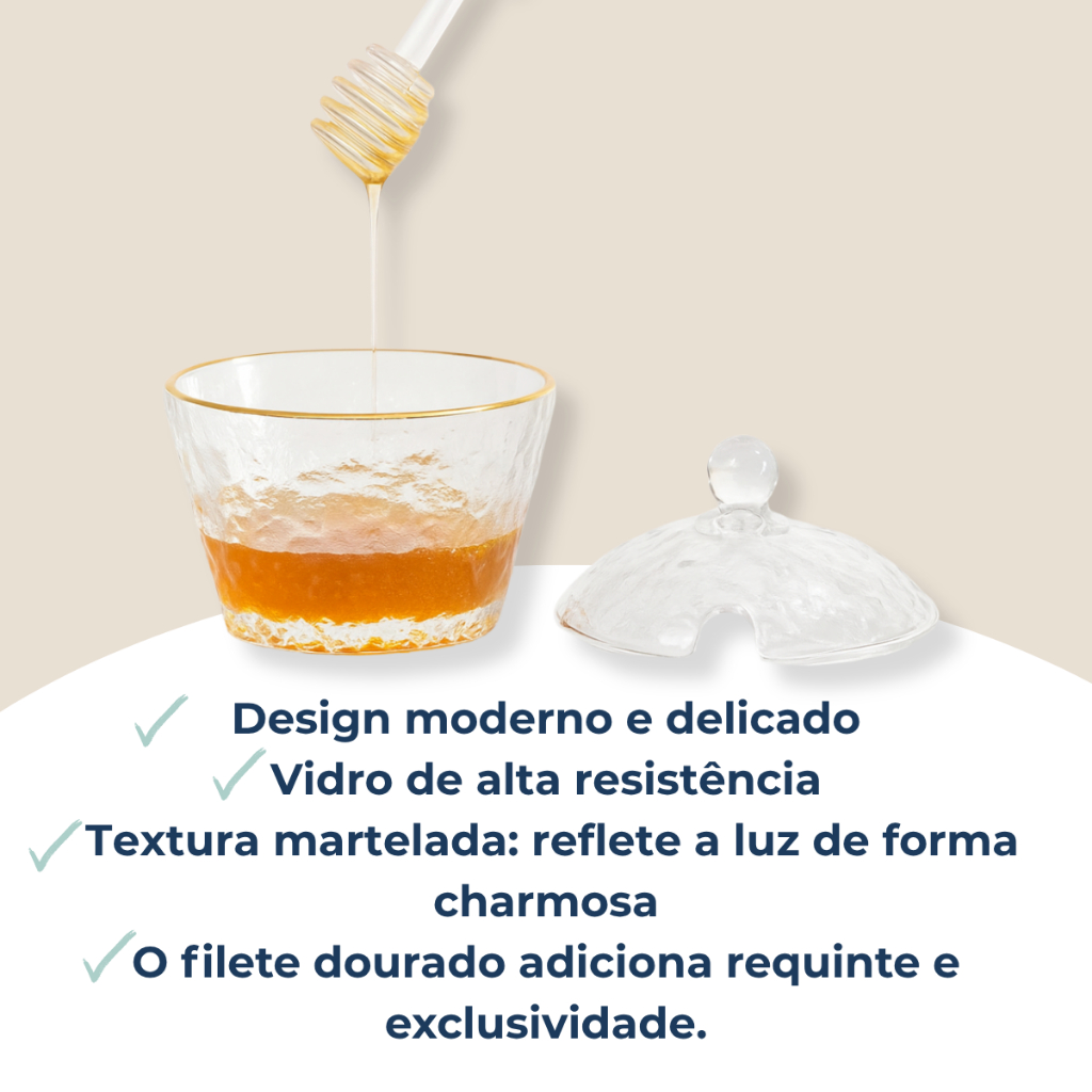 Meleira Pote Porta Mel Em Vidro Martelado Borda Dourada Com Tampa E Pegador Dosador
