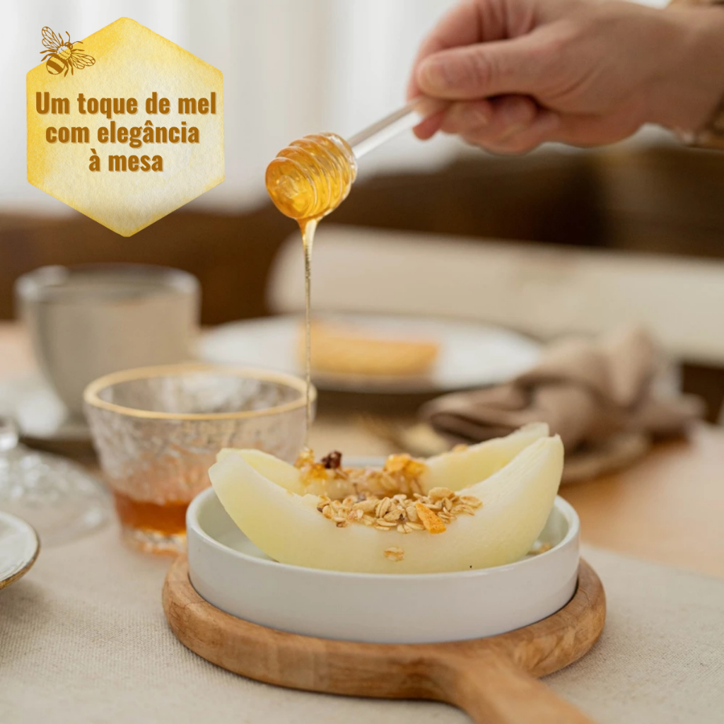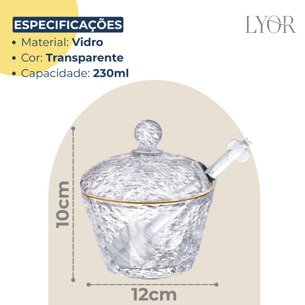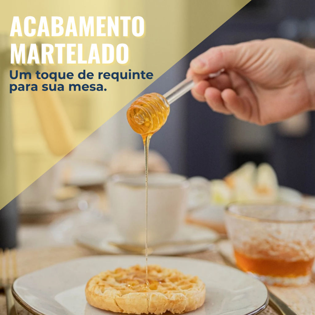 Meleira Pote Porta Mel Em Vidro Martelado Borda Dourada Com Tampa E Pegador Dosador